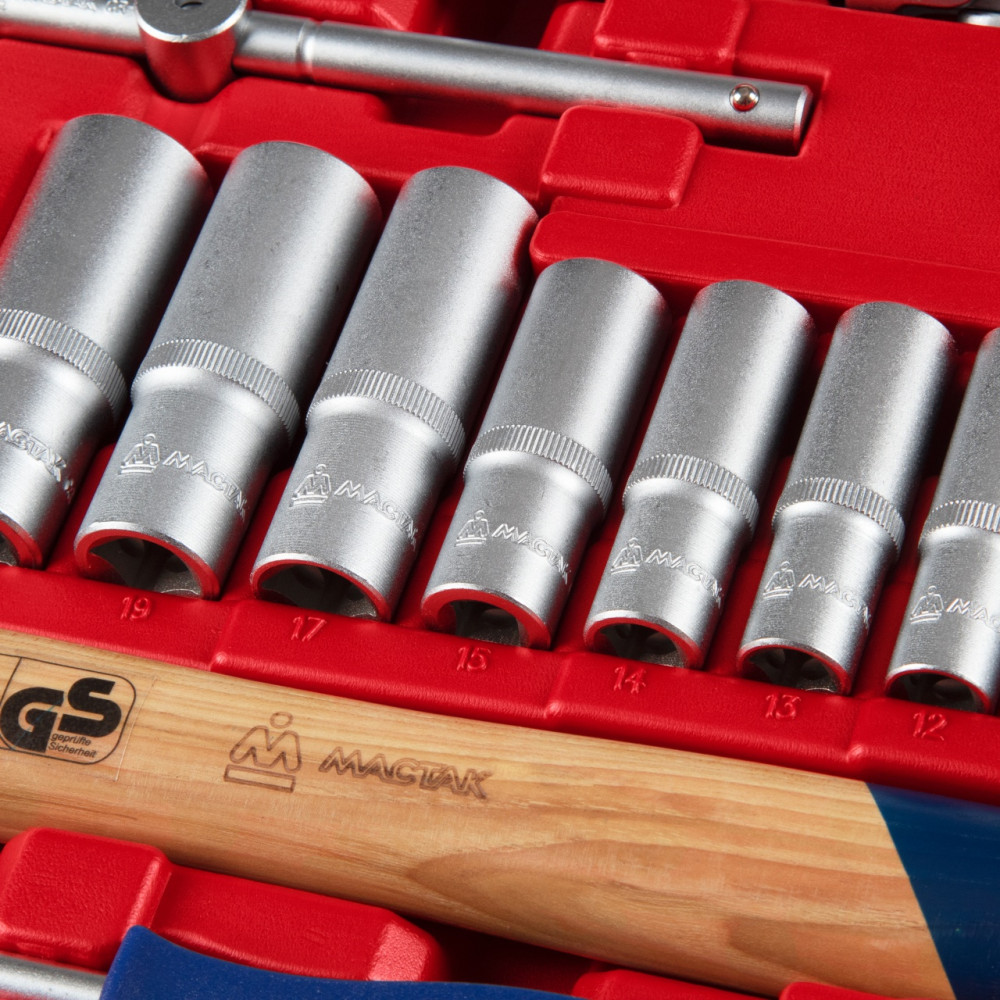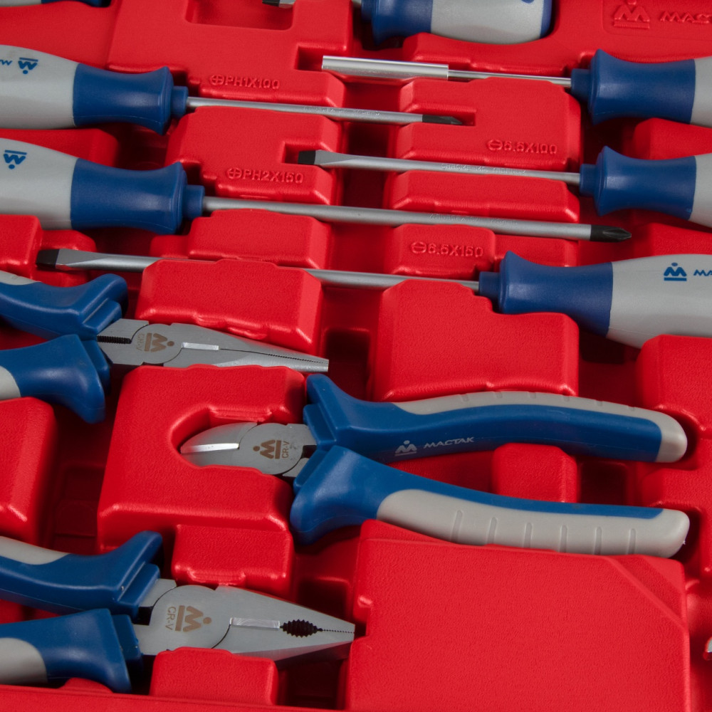 Набор подойдёт в качестве надёжного помощника для любого автомобиля в дороге, для работы в гараже, а также в любой мастерской или станции ТО.