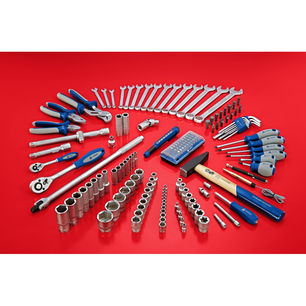 Материалы – сталь Cr-V, сталь SNCM+V (S2), конструкционная сталь, хром, пластик PP, PP+TPR (рукояти), дерево (рукоять молотка)