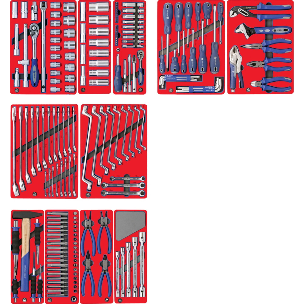 Стандартизация размеров ложементов позволяет разместить наборы на ваше усмотрение в любом варианте организации рабочего пространства – по типу, назначению или частоте использования. Вы всегда будете иметь под рукой тот инструмент или приспособление, которое вам необходимо в данную минуту, а ячейки ложементов позволят содержать набор в полном порядке.