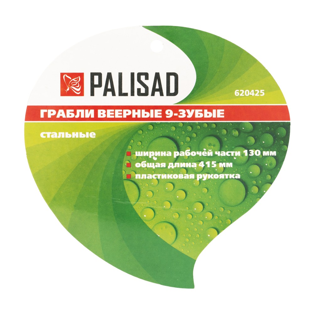 Грабли веерные 9 - зубые, 130 х 415 мм, стальные, пластиковая рукоятка, Flower Green, Palisad