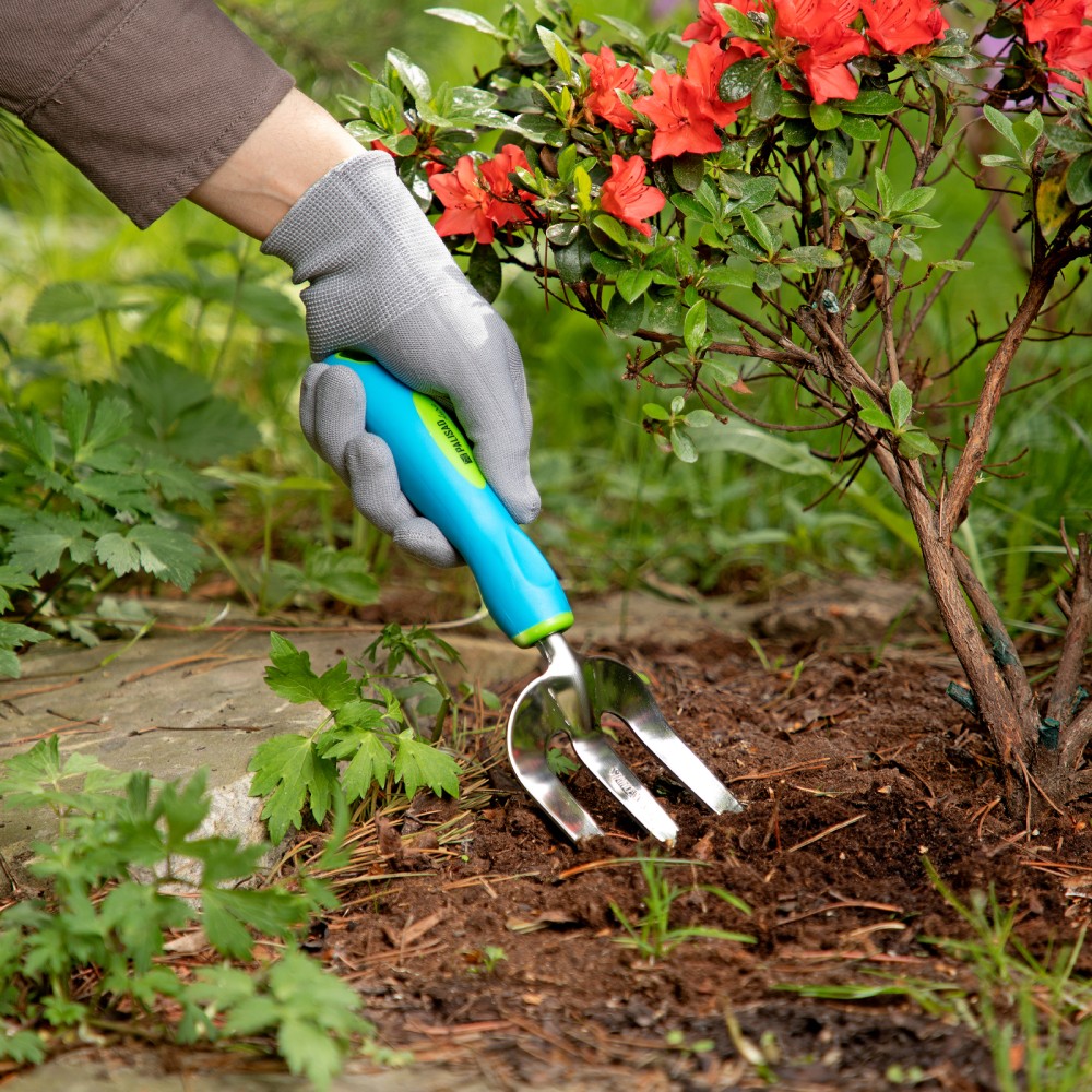 Посадочная вилка Palisad PREMIUM PLUS 62053 размером 80 х 290 мм, из нержавеющей стали, с двухкомпонентной рукояткой, пригодится садоводам для работ на дачном участке. Она предназначена для ухода за небольшими декоративными растениями: пересадки, рыхления почвы, удаления сорняков.ПреимуществаПрочность и долговечность — рабочая часть из нержавеющей стали устойчива к повреждениям и коррозии.Эффективная работа — утолщенные зубья легко проникают в землю, не утрамбовывая ее.Комфортная эксплуатация — двухкомпонентная рукоятка из полипропилена и пластичной резины не выскальзывает из ладони.Удобное хранение — вилку можно подвешивать на крючок благодаря отверстию в рукоятке.