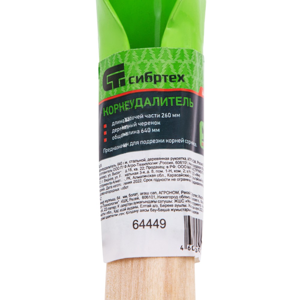 Стальной корнеудалитель Сибртех АГРОНОМ 64449 длиной 640 мм, с деревянной рукояткой, предназначен для уничтожения сорняков со стержневой корневой системой. Эффективно справляется со своими задачами благодаря удлиненной рабочей части и угловому профилю. Инструмент поможет придать аккуратный вид садовому или огородному участку. ПреимуществаВысокая прочность и экологичность — рабочая часть изготовлена из среднеуглеродистой стали, а рукоятка — из твердых пород древесины.Защита от разрушения — порошковая эмаль предохраняет стальную часть от возникновения коррозии и от воздействия агрессивной среды.Комфортная работа — длина инструмента составляет 640 мм, что позволяет принять удобную позу, снизив нагрузку на позвоночник.Подвесное хранение — в рукоятке предусмотрено удобное отверстие.