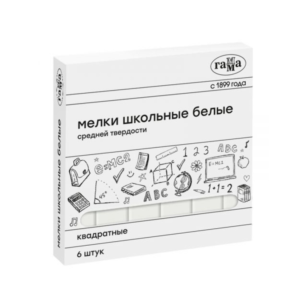 Мел школьный ГАММА белый 6 штук (280120214) средней твёрдости изготовлен из натуральных компонентов, без выраженного запаха. Идеально рисует на шероховатой поверхности. Следы мела легко счищаются с рук. Подходит как для аудиторных занятий, так и для детского творчества на прогулке. Нетоксичные. Для детей старше 3-х лет.
