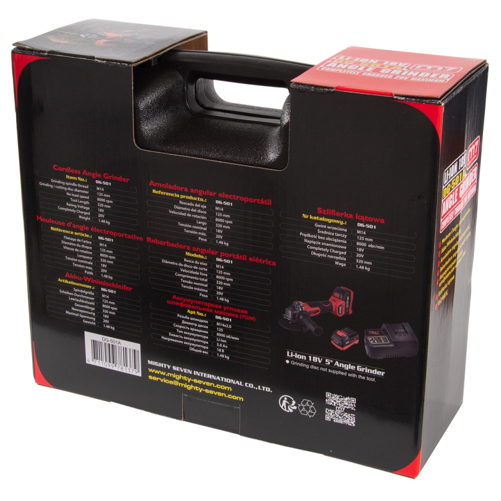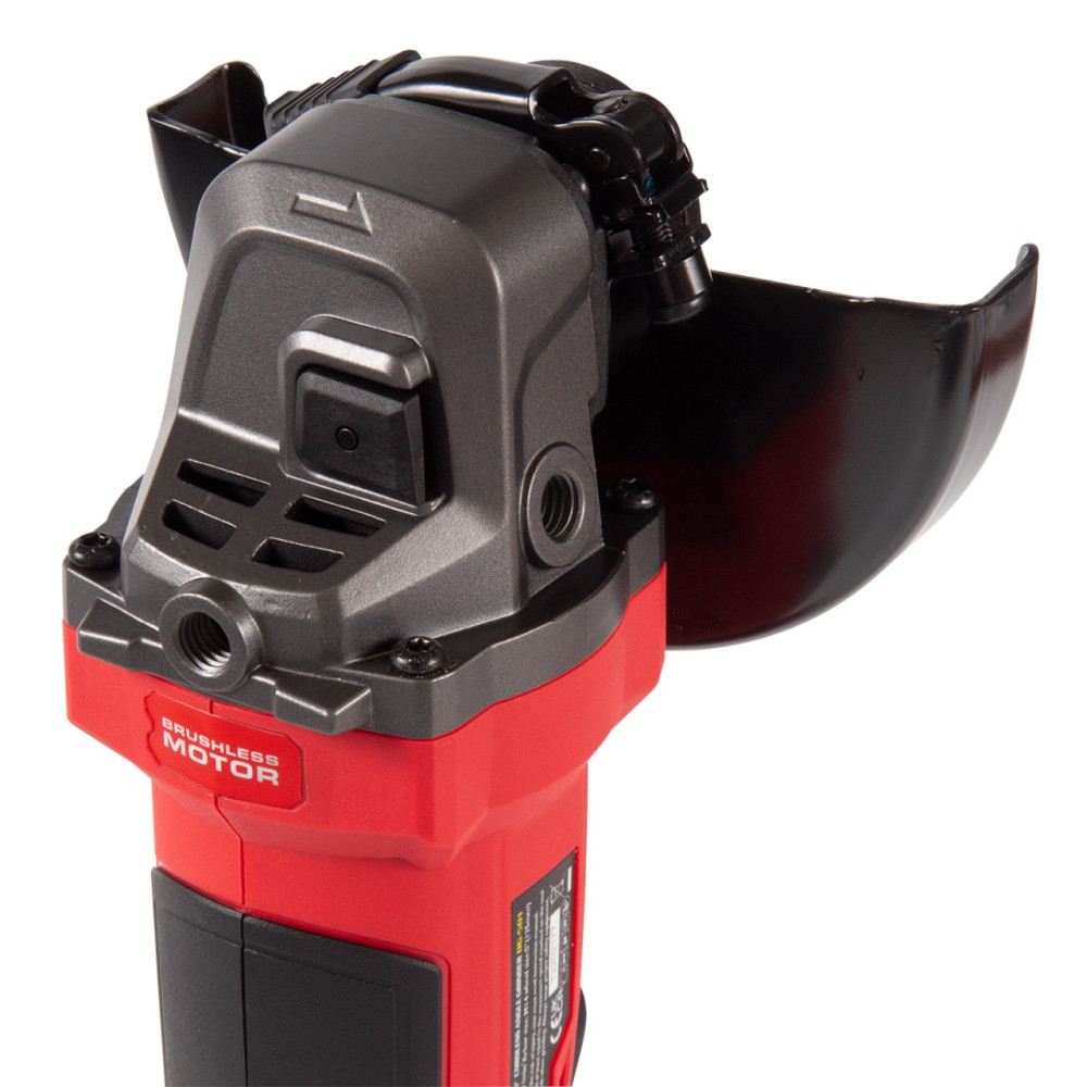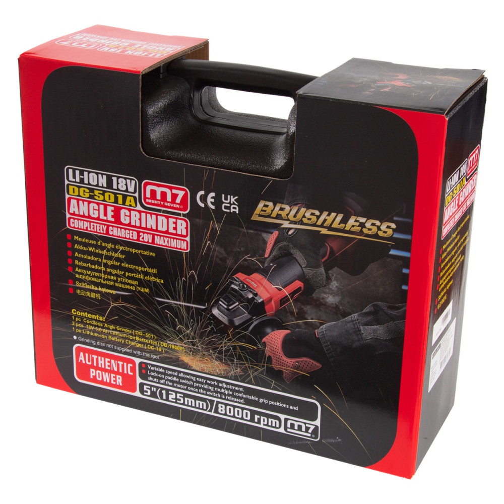 Аккумуляторная угловая шлифовальная машина (УШМ) имеет маркировку EC (электронная коммутация) / BRUSHLESS MOTOR, которая означает, что он оснащён бесщёточным двигателем. В устройстве бесщёточного двигателя так же присутствуют ротор и статор, только обмотка здесь расположена не на роторе, как у щёточных двигателей, а на статоре. Вращение ротора приводит в действие принцип электромагнитной индукции.