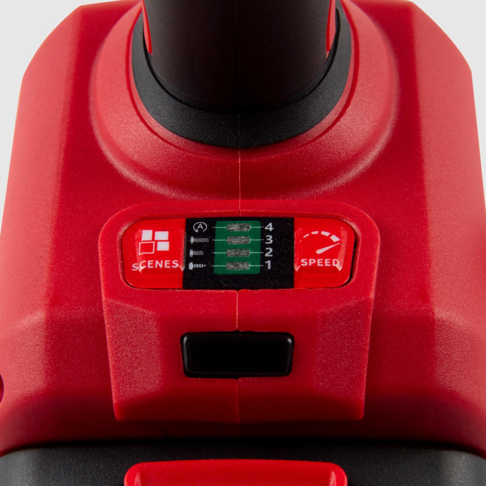 Режим LOOSE STOP – это кратковременный пуск в режиме реверса. При нажатии на пусковую кнопку, срабатывает ротор двигателя гайковёрта в сторону откручивания, что очень удобно при демонтаже заранее ослабленного множества крепёжных соединений. Активируется нажатием кнопки SCENES, расположенной на платформе крепления аккумулятора (красный диод в положении А).