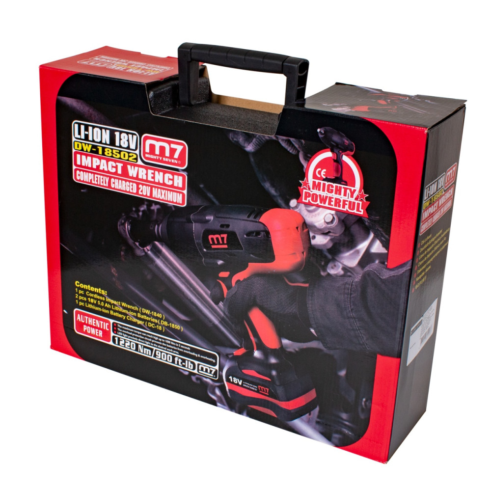MIGHTY SEVEN Гайковерт аккумуляторный ударный 1/2", 1220 Нм, 18 В, 4 предмета, кейс