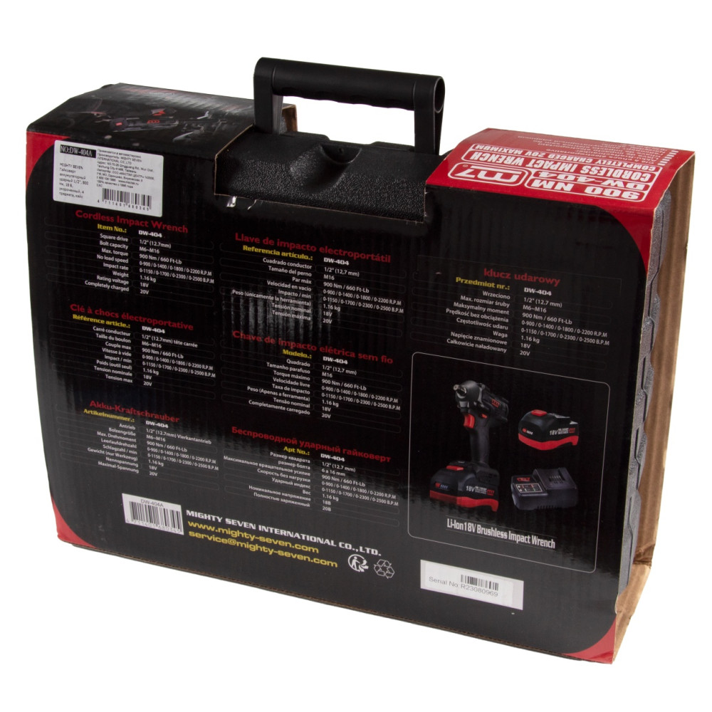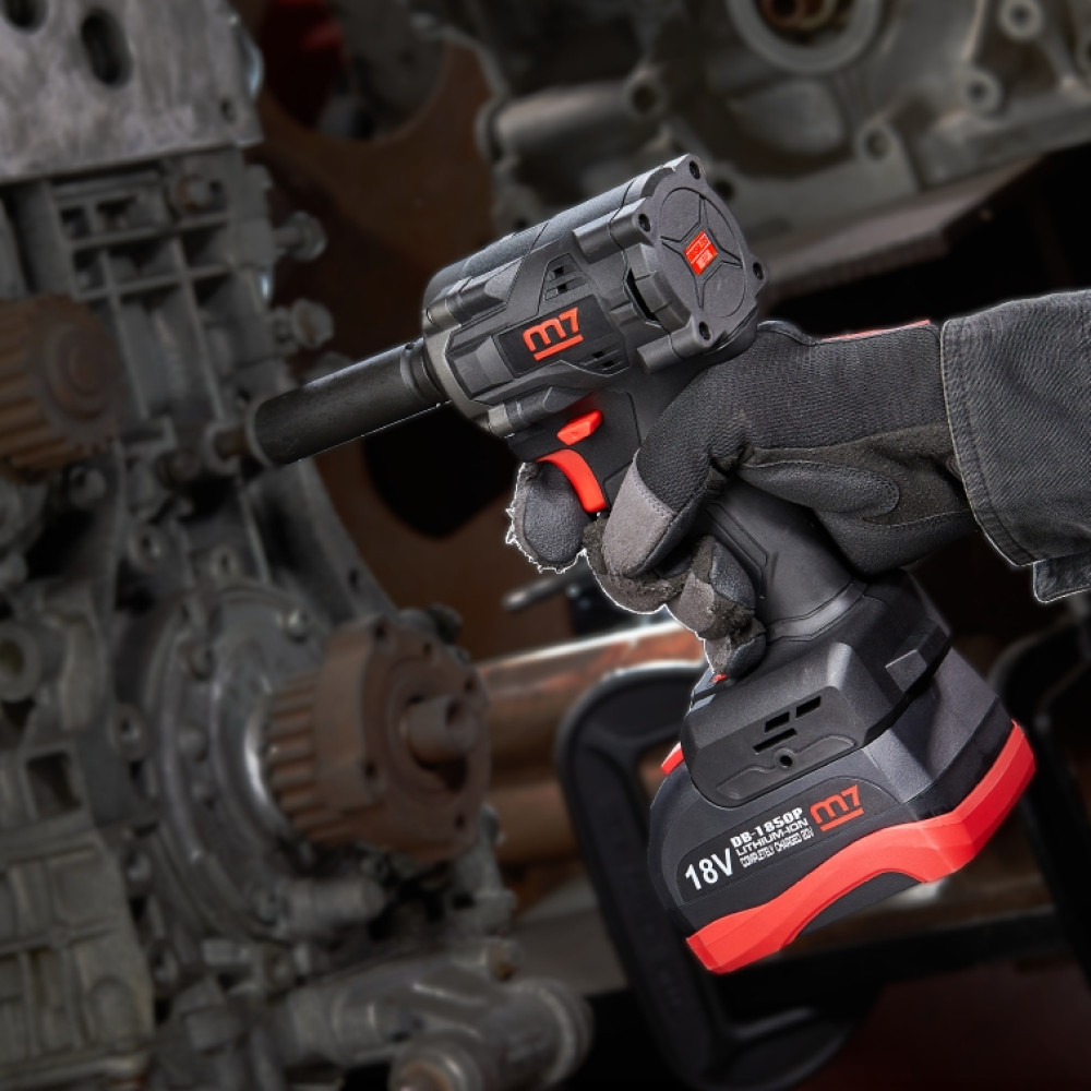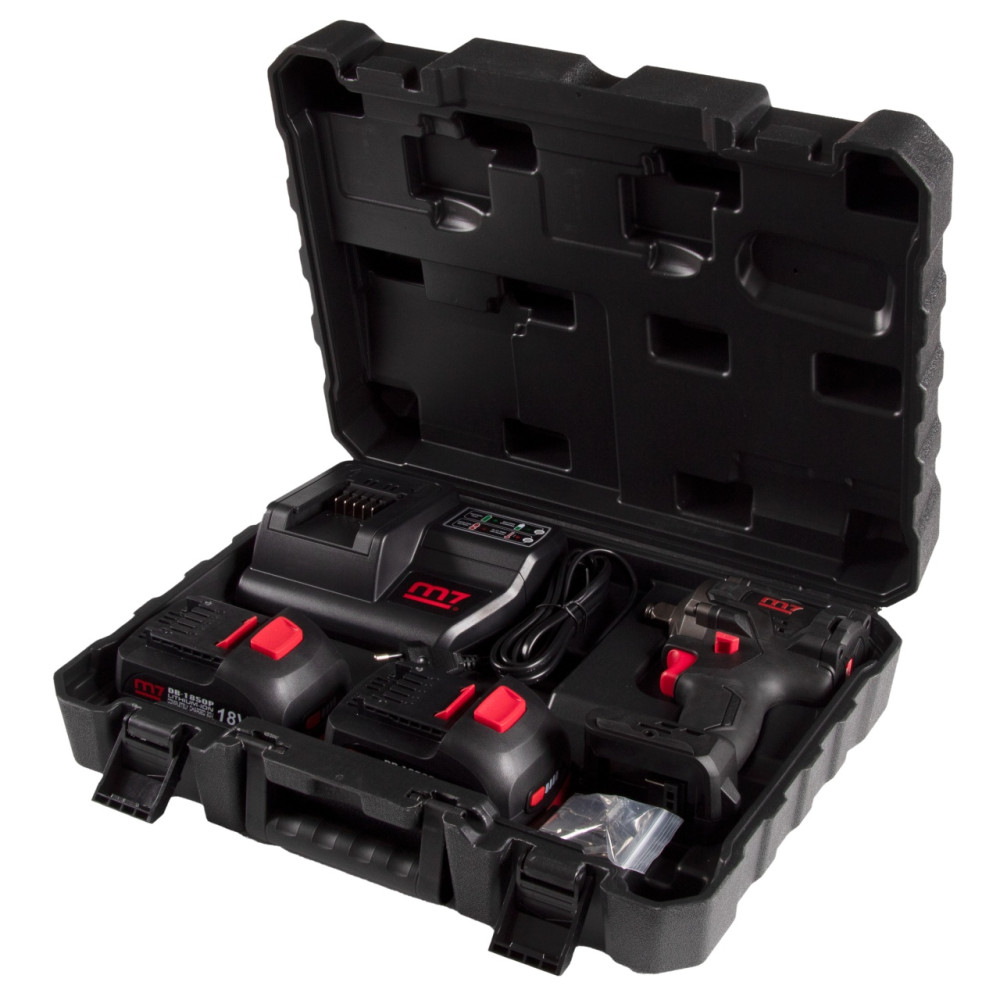 MIGHTY SEVEN Гайковерт аккумуляторный ударный 1/2", 900 Нм, 18 В, укороченный, 4 предмета, кейс