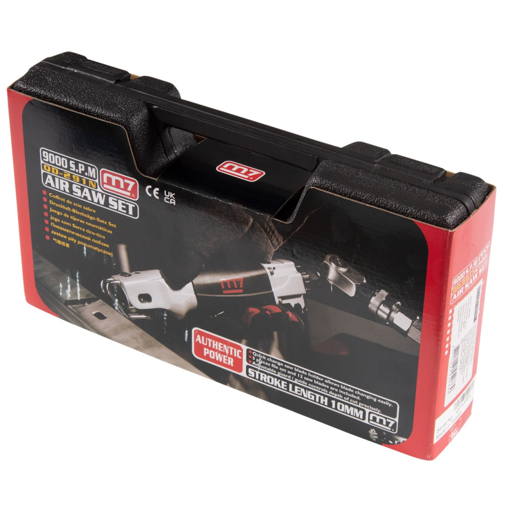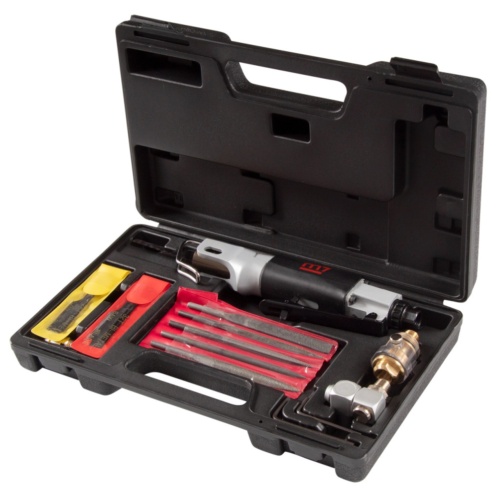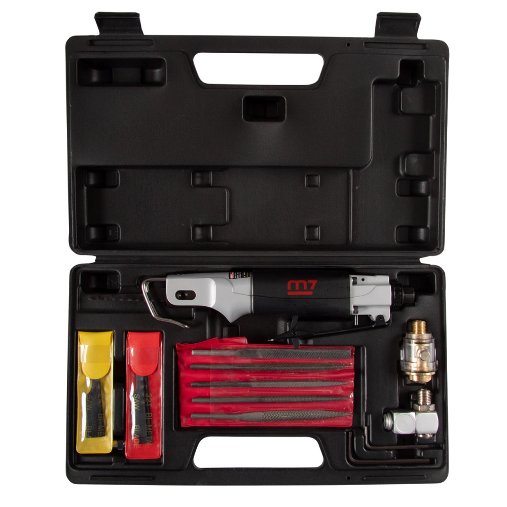 MIGHTY SEVEN Пневмолобзик 10 мм ход полотна, 9000 ход/мин, с набором принадлежностей, 22 предмета