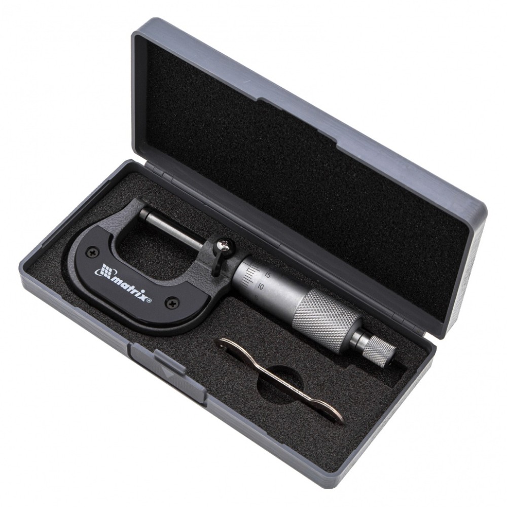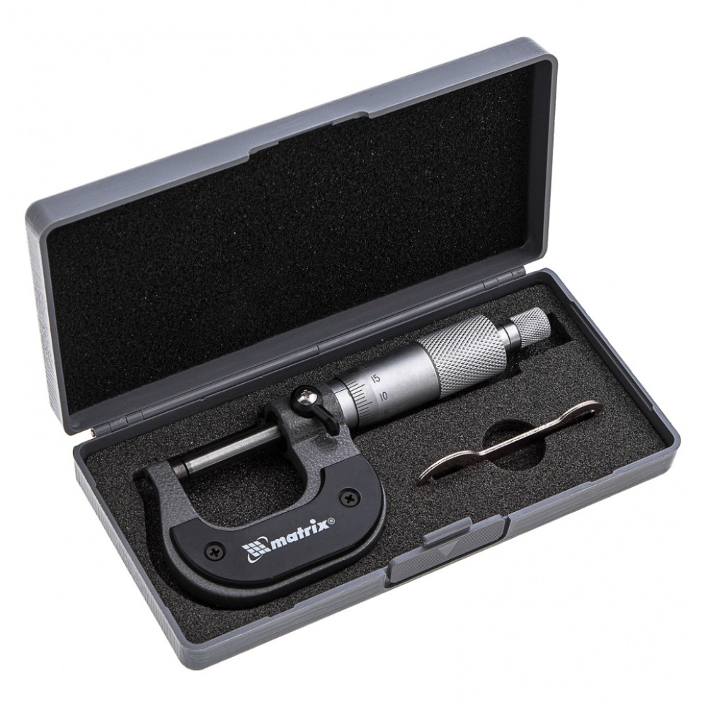 Механический микрометр Matrix 317255 используется для измерения деталей размером 0-25 мм. Обеспечивает высокую точность результатов — шаг измерения составляет 0,01 мм с допустимой погрешностью ±0,004 мм. Микрометр применяется для определения толщины листового металла, проволоки, различных деталей. Будет полезен на производстве, в слесарной мастерской и автосервисе.