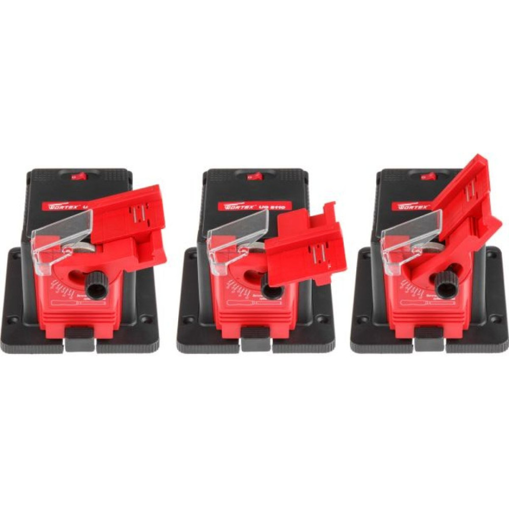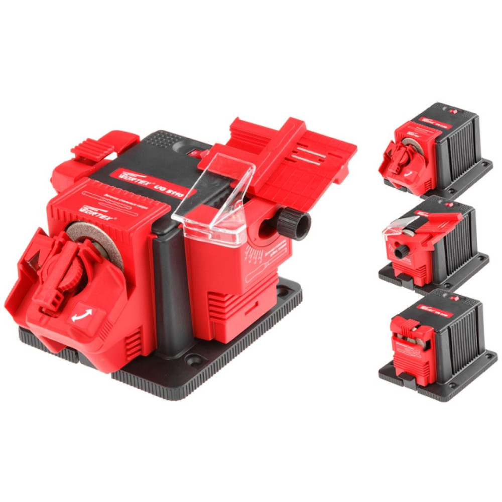 Инструмент применяется для заточки различного режущего инструмента (свёрл, стамесок, зубил, лезвий, ножей и ножниц). Максимальный диаметр заточки сверла 10 мм. Выполнение работ обеспечивает шлифовальный круг диаметром 51 мм. Благодаря большому числу оборотов заточка не потребует много времени. Защитный экран из прозрачного пластика дает возможность визуально контролировать выполнение операции, а также оберегает оператора от вылета искр. В основании устройства предусмотрены отверстия для крепления к поверхности.