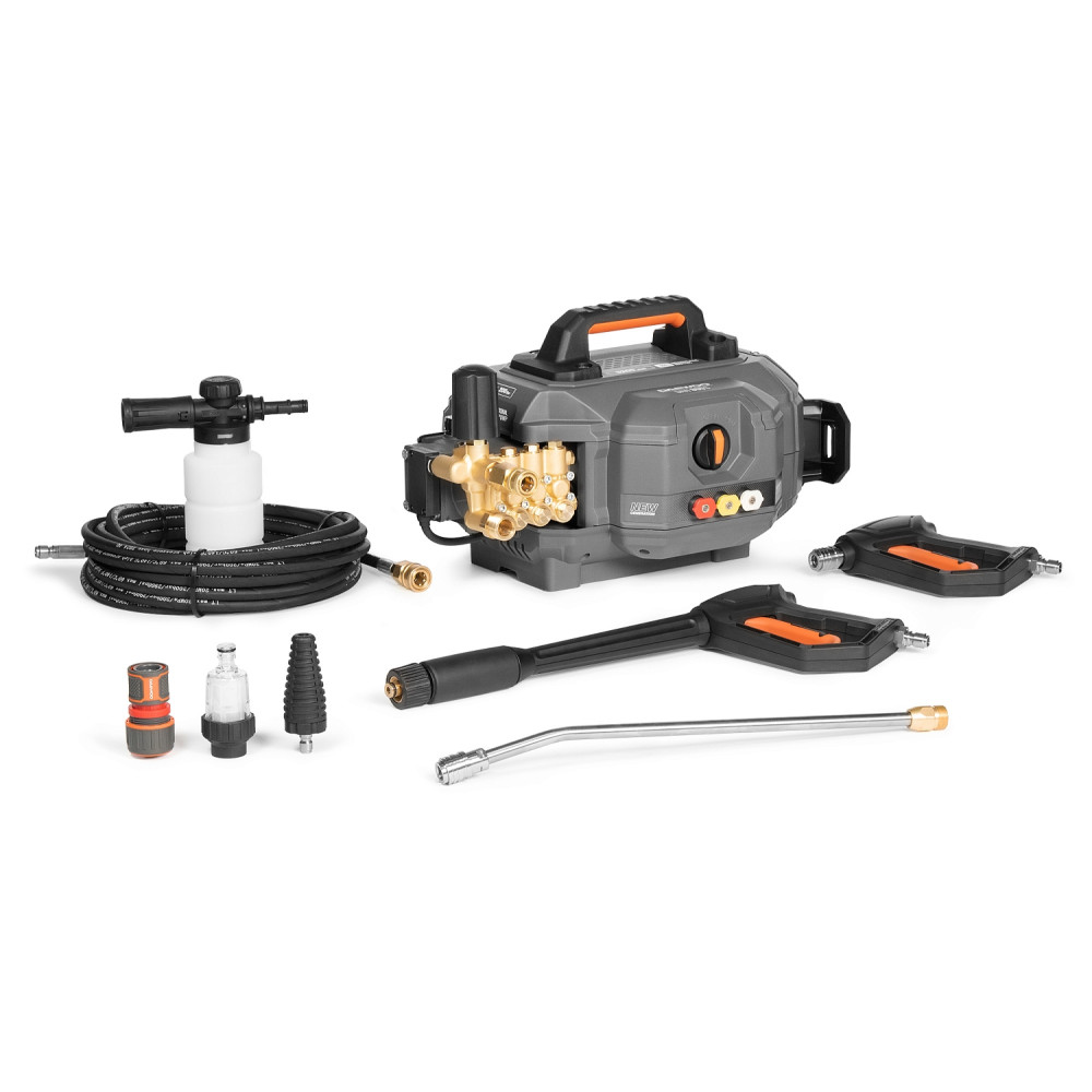 - Профессиональный пистолет. Все детали пистолета, находящиеся в непосредственном контакте с водой, выполнены из нержавеющей стали, устойчивой к перепадам давления и температуры. Эргономичная рукоятка и изогнутый наконечник для насадок разработаны для удобства мойки под любым углом.