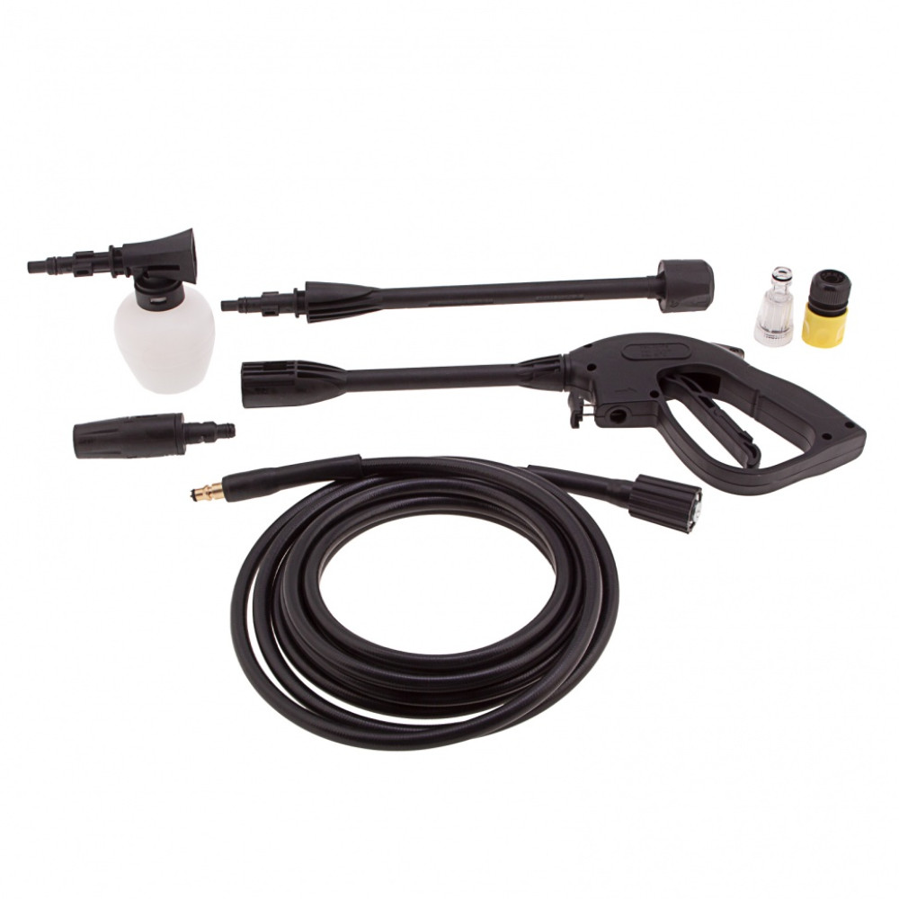 - Эффективная работа — встроенный пеногенератор позволяет использовать моющие средства для очистки поверхностей.