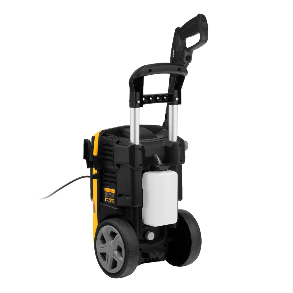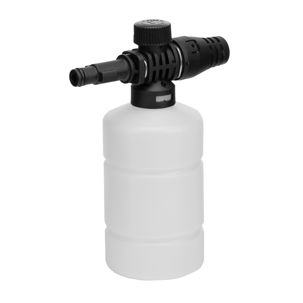 - Использование моющего средства — машина имеет встроенный бачок, также можно подключить внешний пеногенератор, входящий в комплект поставки.