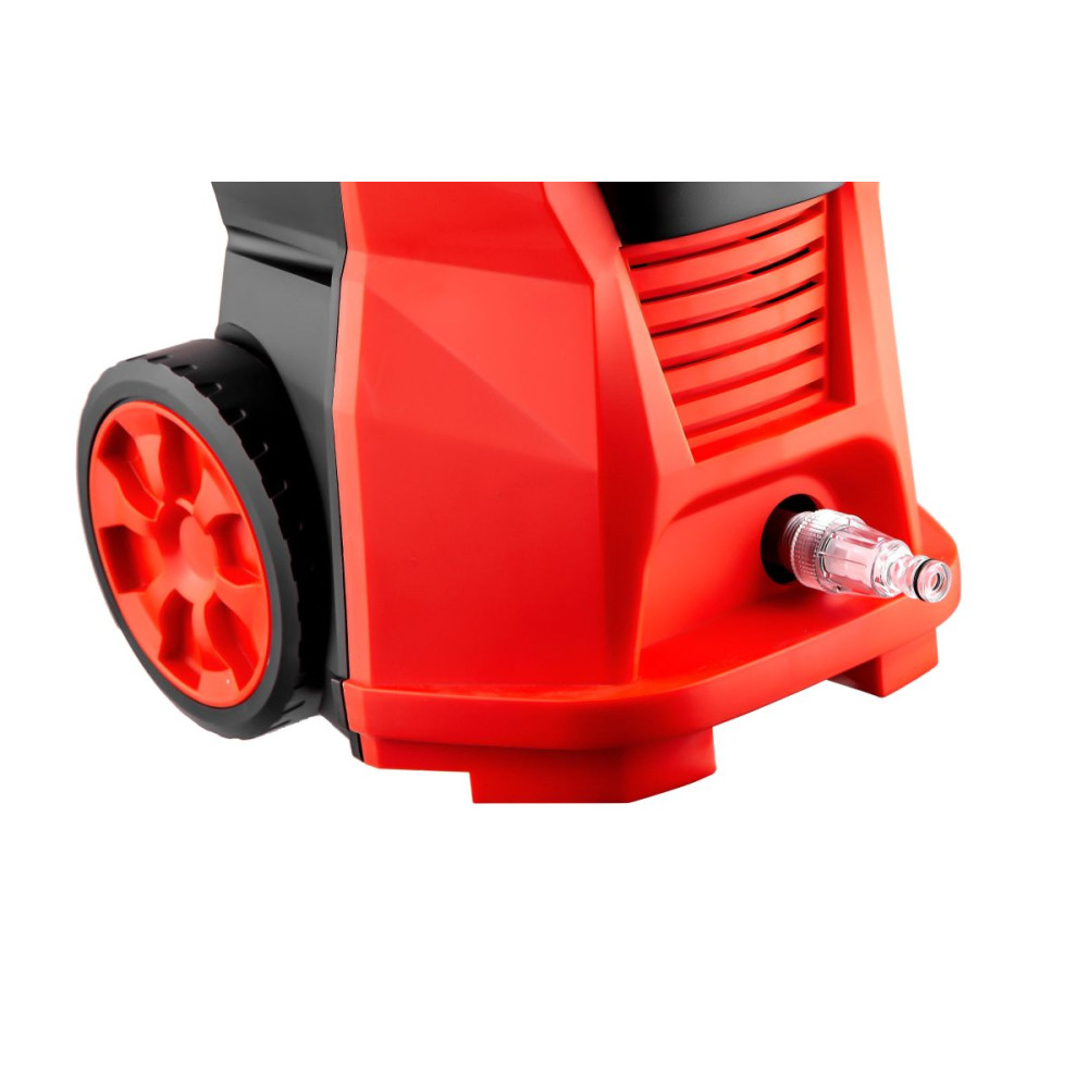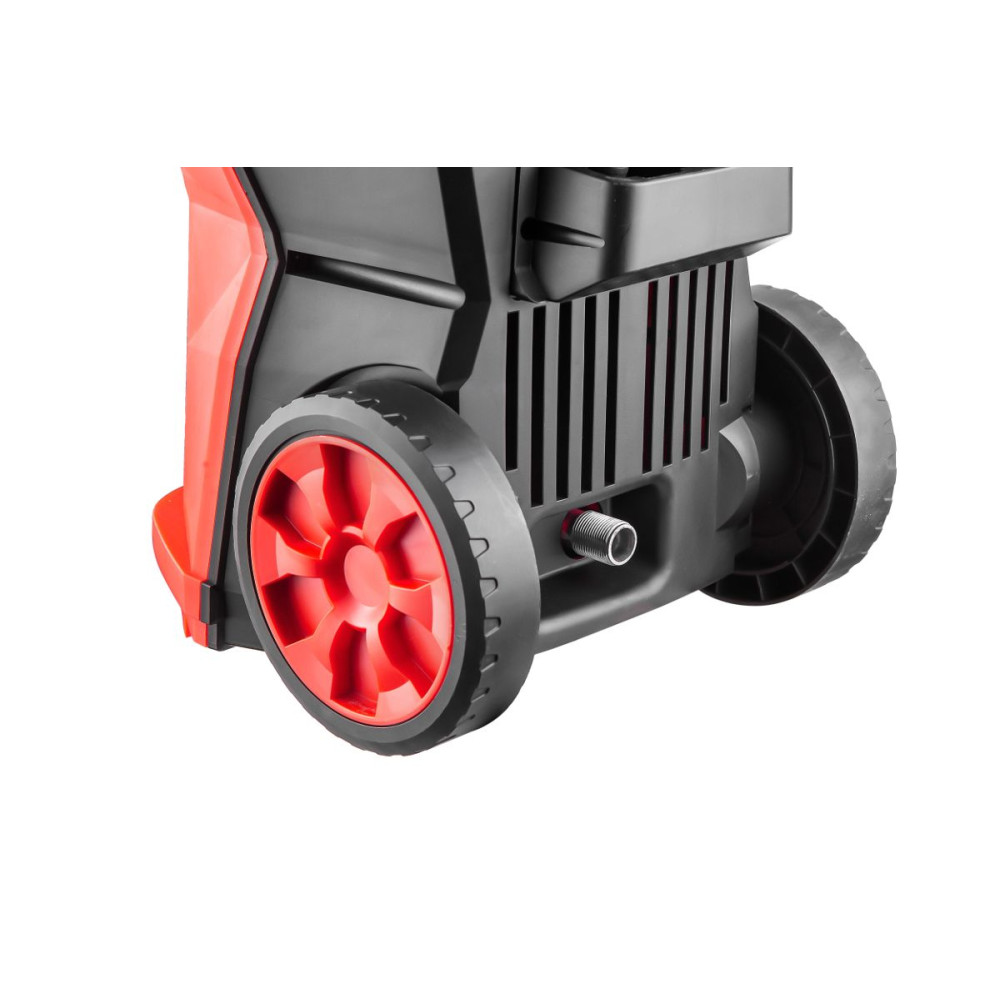 - Два прочных колеса улучшают манёвренность агрегата. Мойку не придётся поднимать при работе.