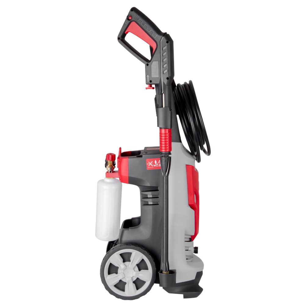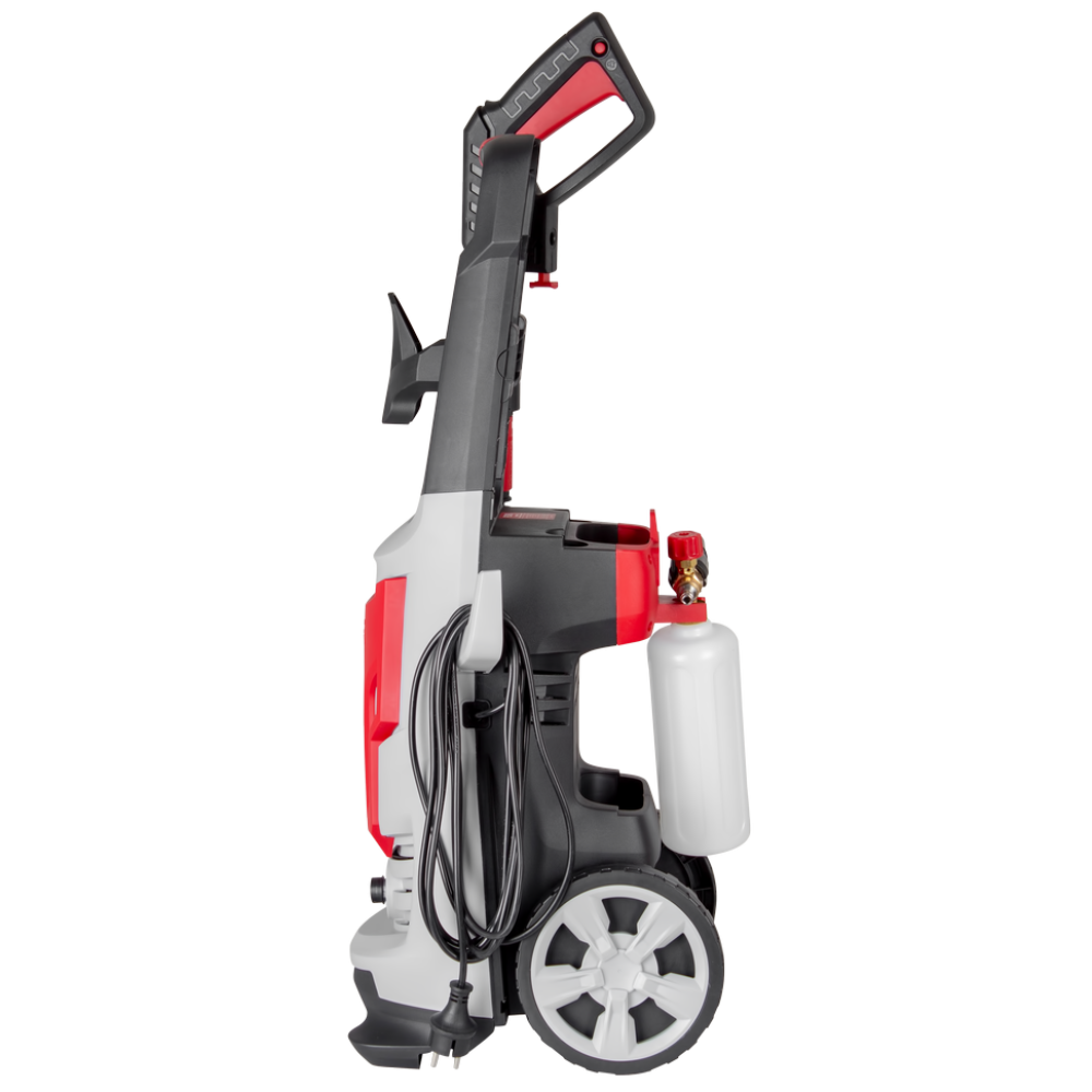 - Мойка высокого давления оснащена алюминиевой помпой, которая отличается высокой надёжностью и длительным сроком службы. Двигатель имеет защиту от перегрева и воздушное охлаждение. Пистолет-распылитель оснащён предохранительным клапаном, защищающим от случайного пуска, а для защиты внутренних компонентов установлен фильтр воды грубой очистки.