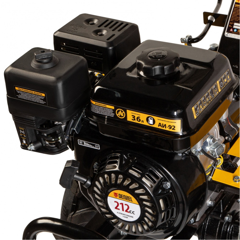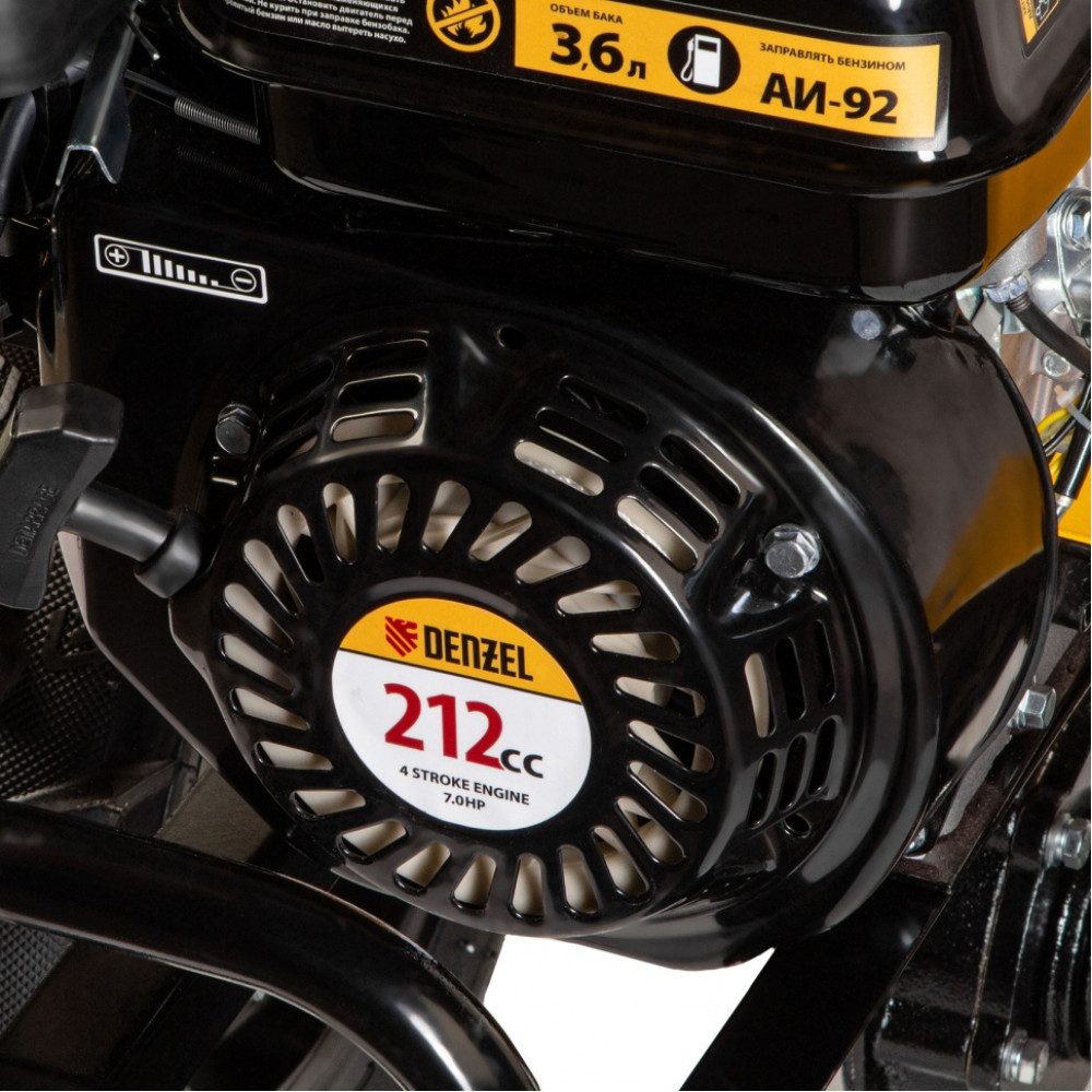 - Экономичность — двигатель Denzel Long Life позволяет заправлять бак не чаще чем 1 раз в 3,5 часа и реже покупать новое топливо.