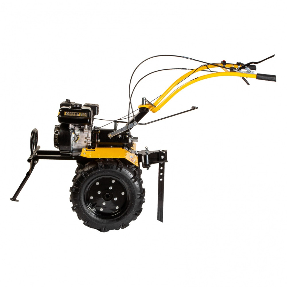 - Удобное хранение — для устойчивого положения мотоблока предусмотрена складная ножка.