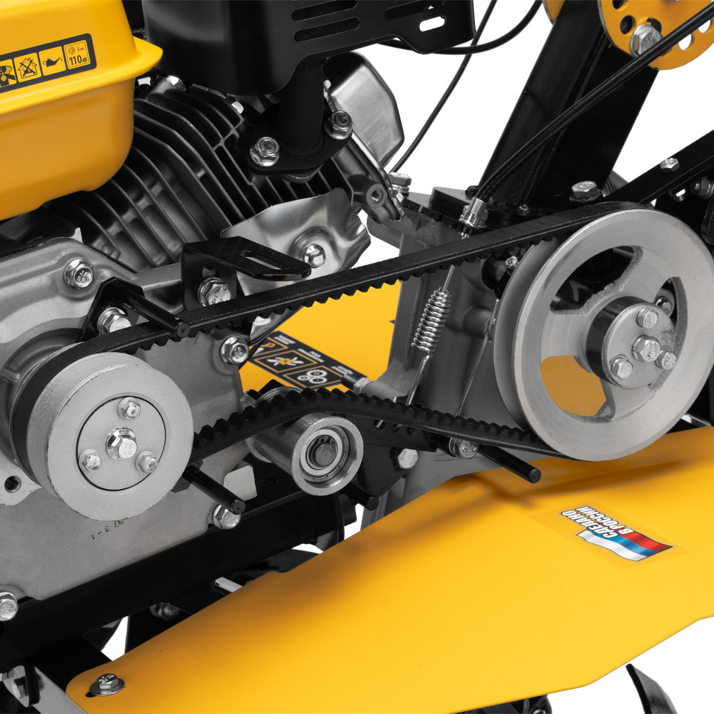 Усиленный шестеренчато-цепной редуктор из алюминия позволяет работать длительное время с большими нагрузками, шкив отбора мощности и кронштейн диаметром 30 мм позволяют подключать активное навесное оборудование. При помощи универсальной сцепки мотоблок агрегатируется с различным навесным оборудованием Denzel: плугом, окучником, картофелевыкапывателем (совместимые артикулы 59905, 59911, 59906, 59907, 59912, 59908, 59913). Тем самым можно сократить расходы на приобретение сельскохозяйственной техники. Повысить проходимость можно при помощи грунтозацепов 59901, 59914, 59915, 59916, 59917. Установка прицепа Denzel 59950 позволяет использовать мотоблок для перемещения по участку и транспортировки грузов.