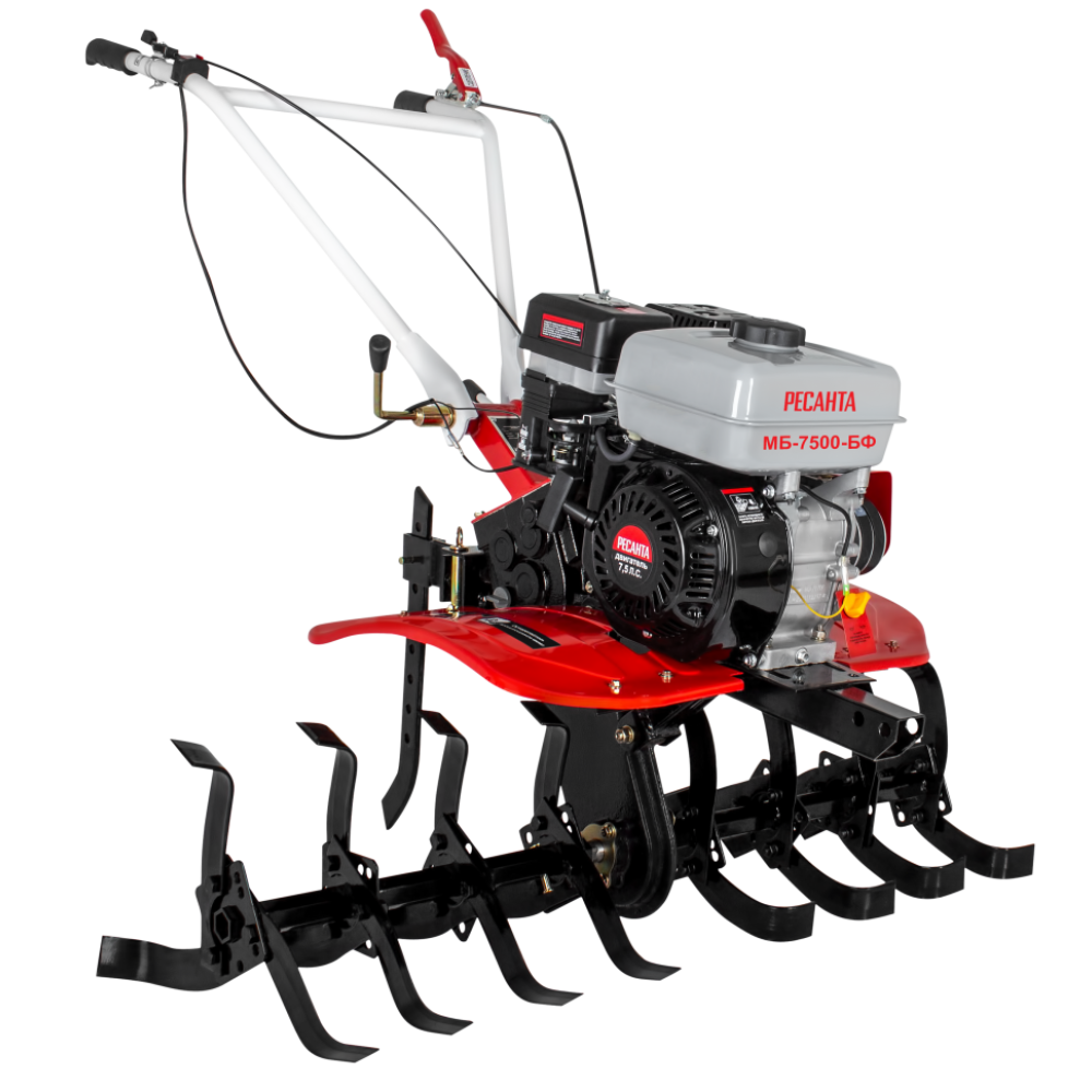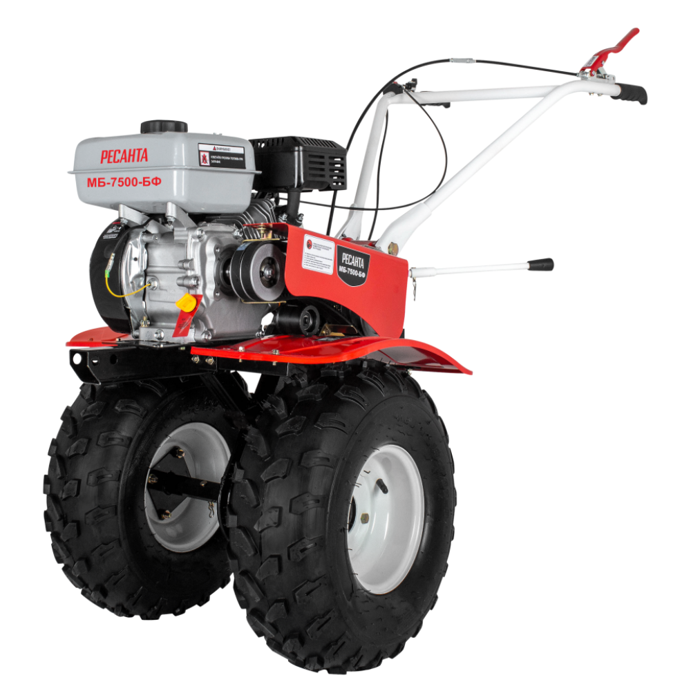 - Сельскохозяйственная машина Ресанта МБ-7500P-БФ разработана специально для использования на приусадебных участках и в частных фермерских хозяйствах. Мотоблок позволяет качественно выполнить рыхление, боронование, выравнивание и другие операции по обработке почвы. Модель отличается большими колесами 19х7-8 с агрессивным протектором, которые не дадут увязнуть на любом типе грунта.