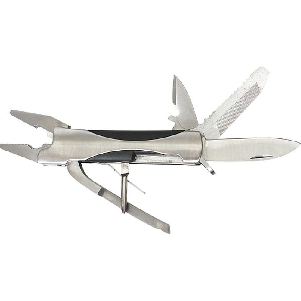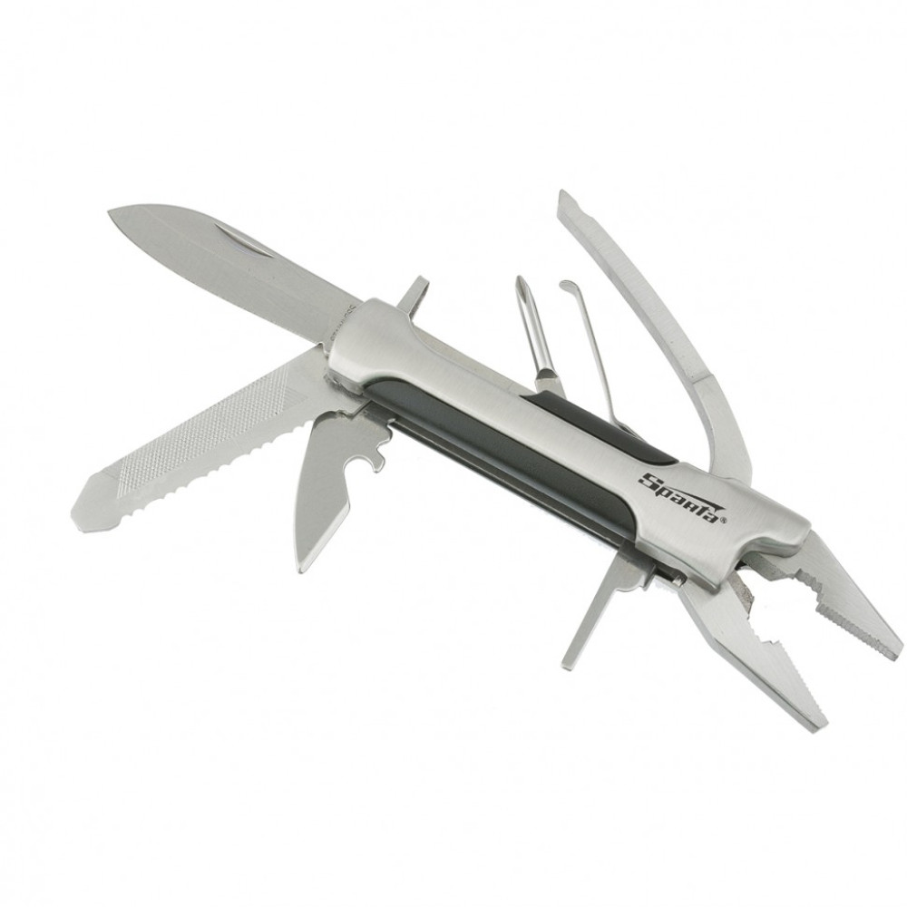 Трансформер Sparta 176085, 10 функций, в чехле, можно использовать для разрезания различных материалов, закручивания и откручивания резьбовых крепежей, фиксации предметов, а также открывания бутылок и консервных банок. Он пригодится дома, на даче, в гараже, а также в походе, на рыбалке или охоте.