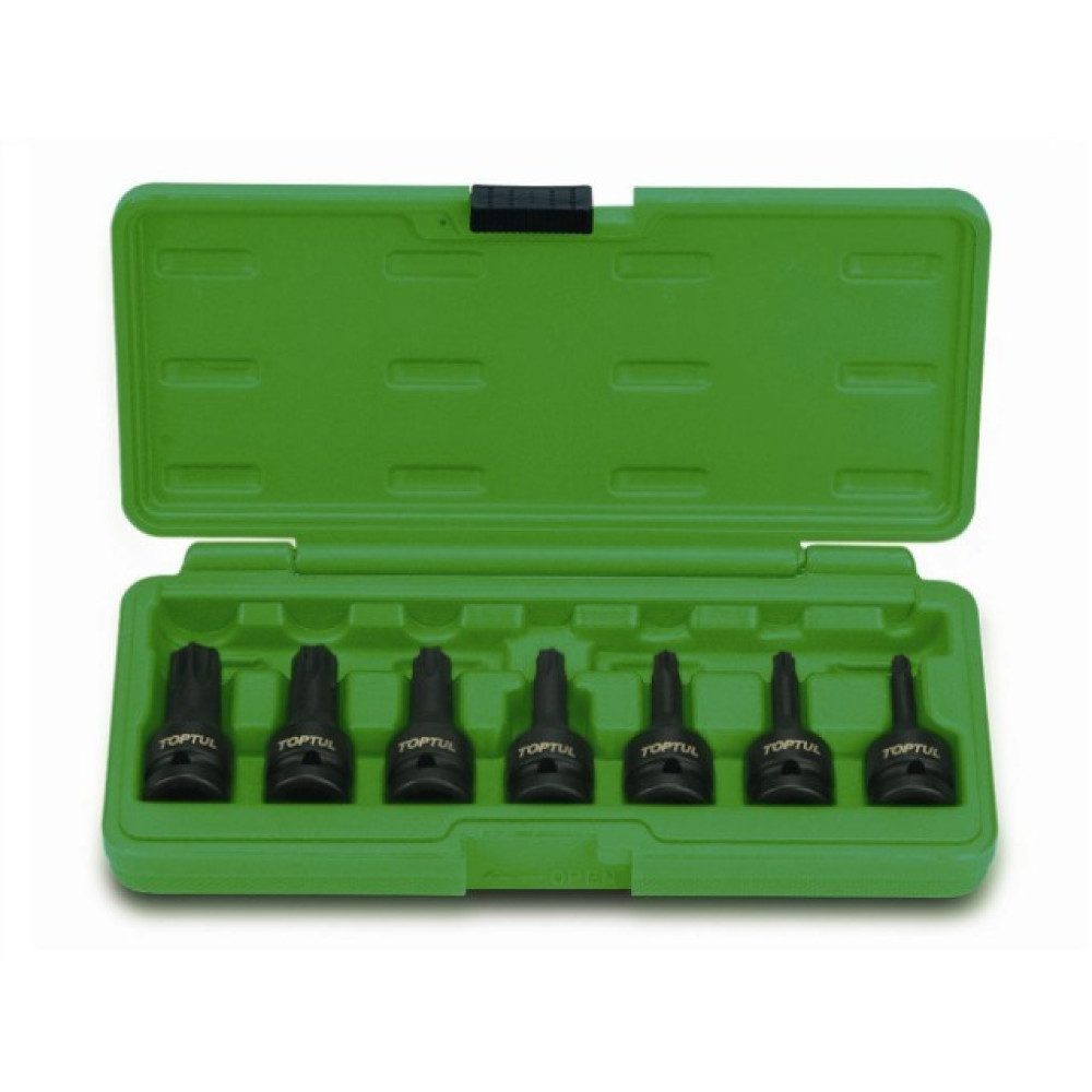 Набор бит TORX под головку 12 ударных TOPTUL включает в себя 7 бит (Т30, Т40, Т45, Т50,Т55, Т60, Т70), изготовленных из высококачественного стального сплава SNCMV. Применяется для заворачиванияотворачивания винтов со шлицом соответствующей формы. Рекомендуется для профессионального использования.