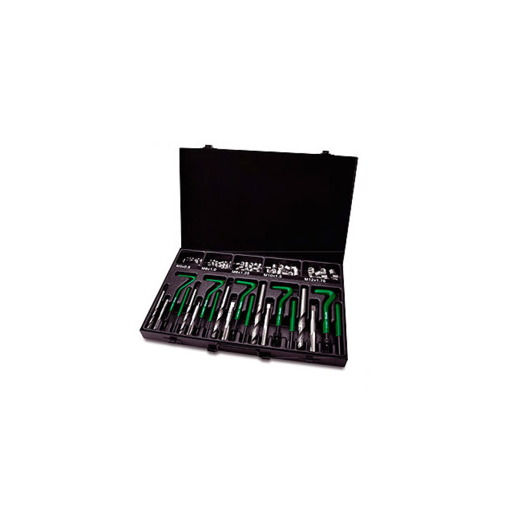 Набор для каждого размера включает в себя винтовые катушки из нержавеющей стали, стальной резьбовой метчик и сверло, инструменты для установки и инструменты для разрыва штифта.