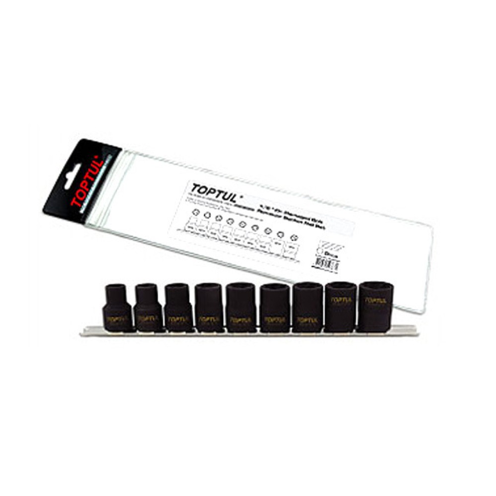 Набор головок 1/2" 10-19 мм на подвесе TOPTUL включает в себя 9 головок для демонтажа болтов и гаек со скругленными либо заржавевшими гранями. Рабочая часть головок имеет уникальную форму спирали, благодаря которой надежно сцепляется с демонтируемым крепежом. Все элементы изготовлены из стального сплава с применением хром молибденового соединения. Рекомендуется для профессионального использования.