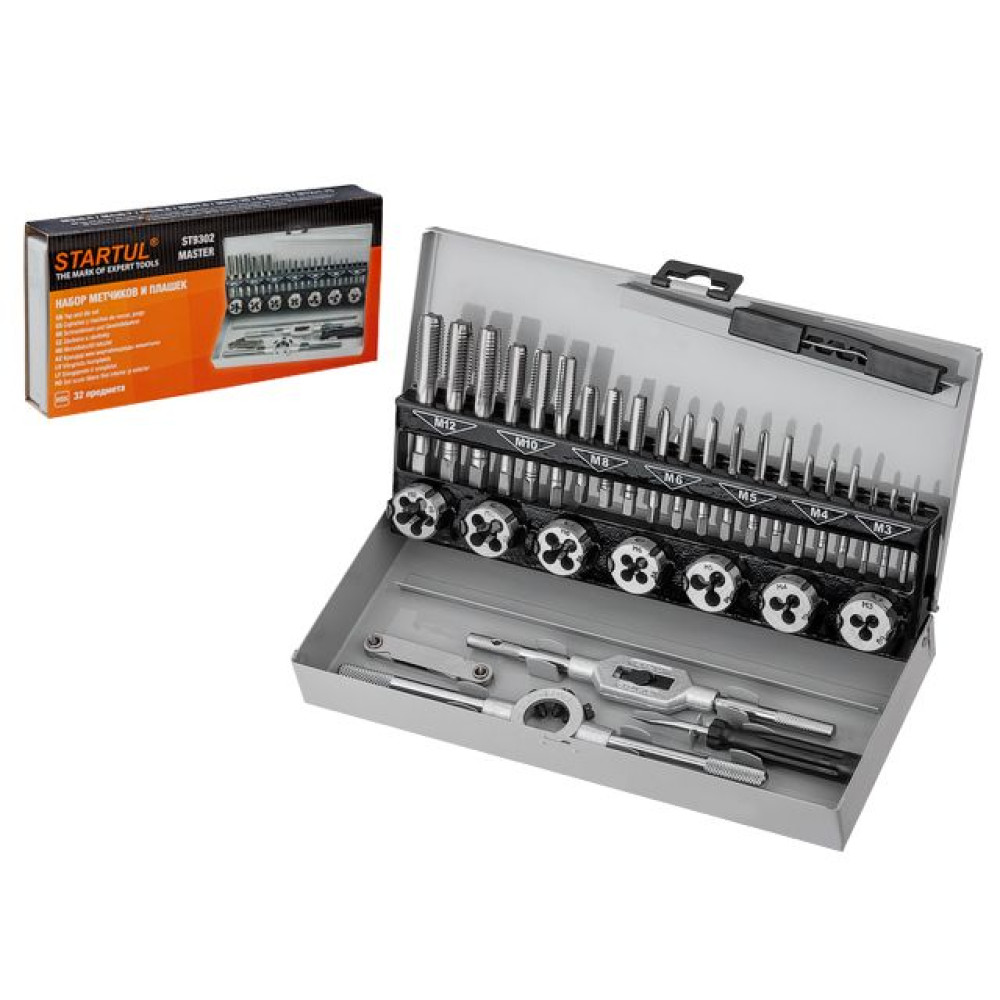 плашки: 7 шт. 3х0,5, 4х0,7, 5х0,8, 6х1,0, 8х1,25, 10х1,5, 12х1,75,