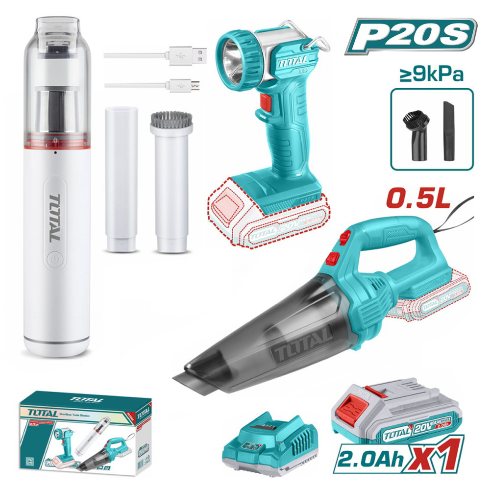 - TOTAL TOSLI20668 - набор от компании TOTAL для помощи в уборке помещений, салона авто. Включает 2 пылесоса и фонарь