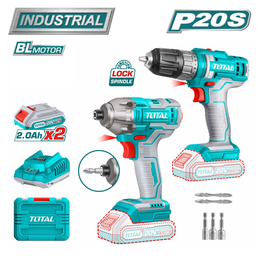 - TOTAL TOSLI230708 - набор аккумуляторного инструмента TOTAL P20S от единого аккумулятора 20v
