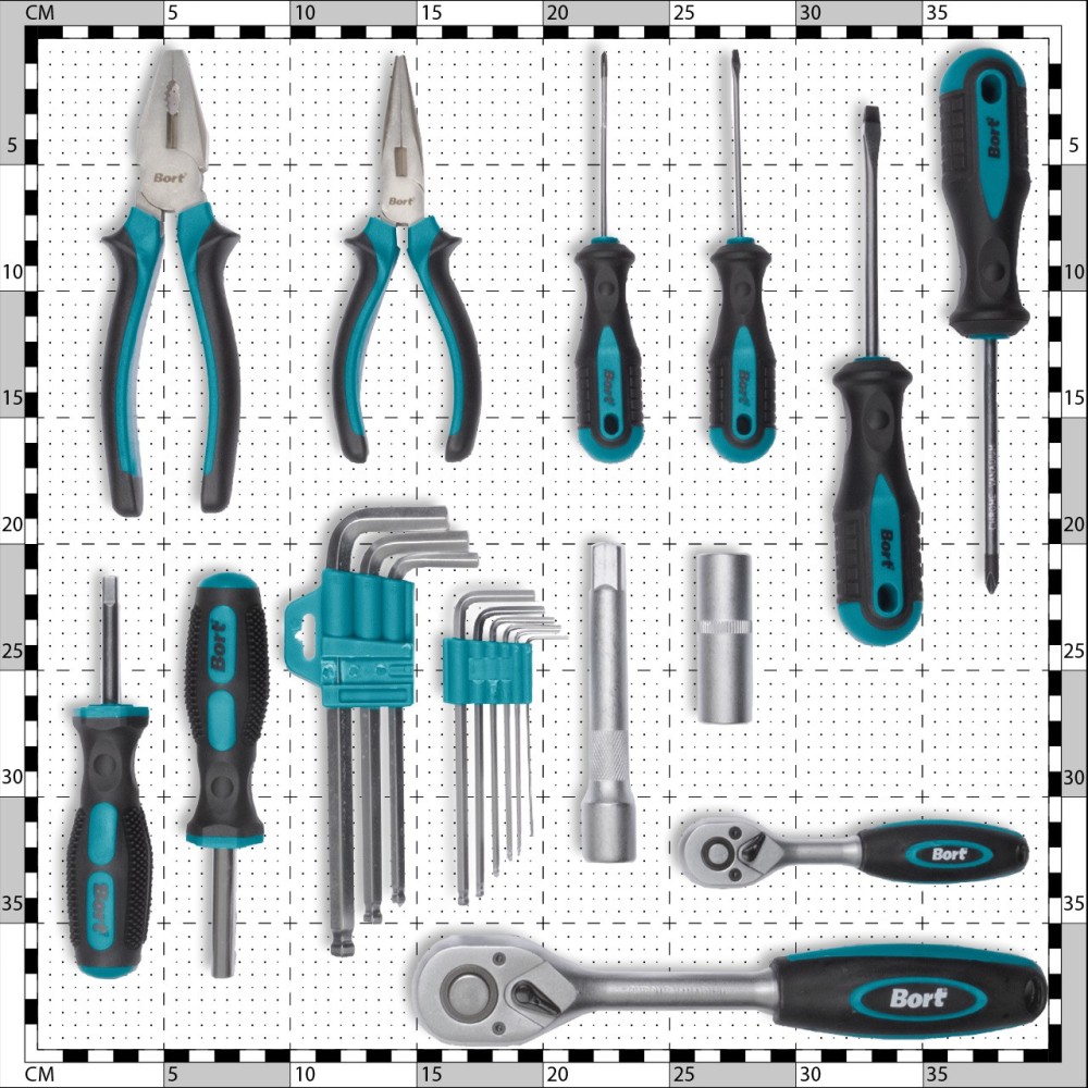 - Ключ имбусовый (размер 1,5; 2; 2,5; 3; 4; 5; 6; 8; 10 мм) - 9 шт.