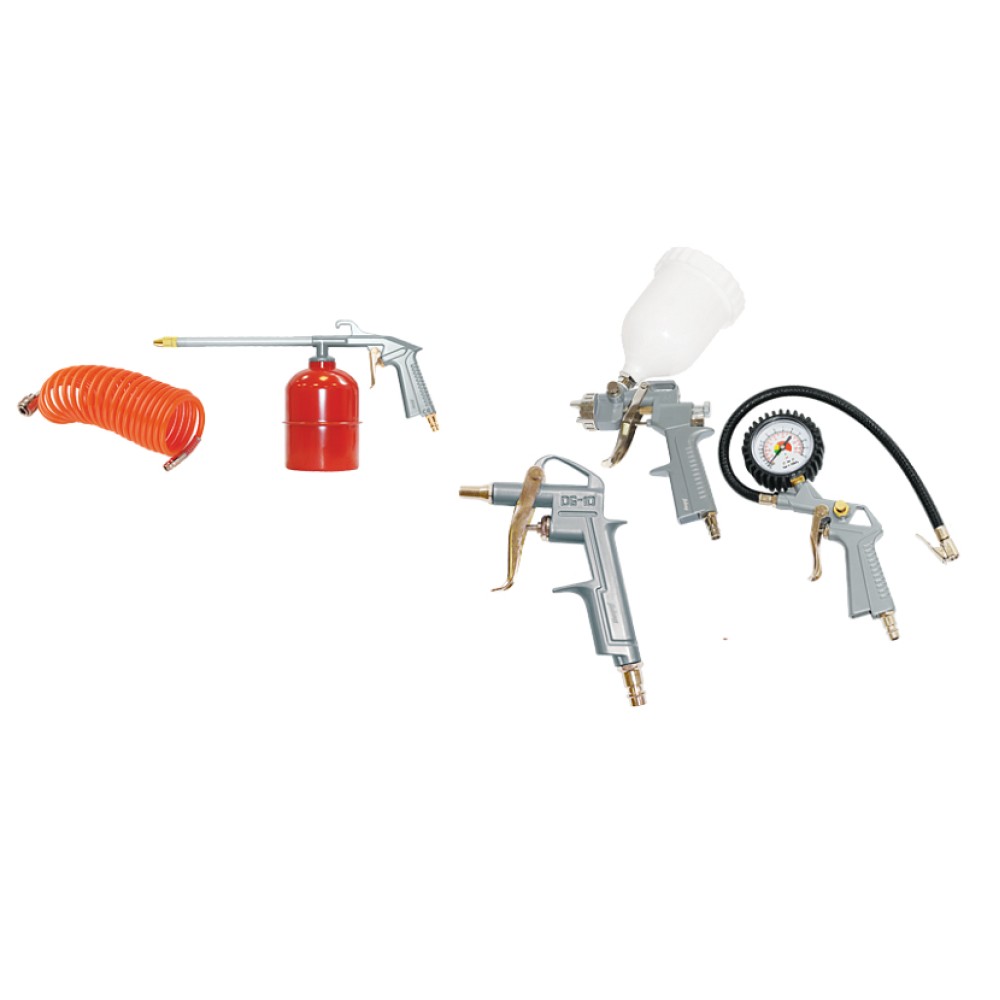 Набор пневмоинструмента, 5 предметов (краскораспылитель с верхним бачком).