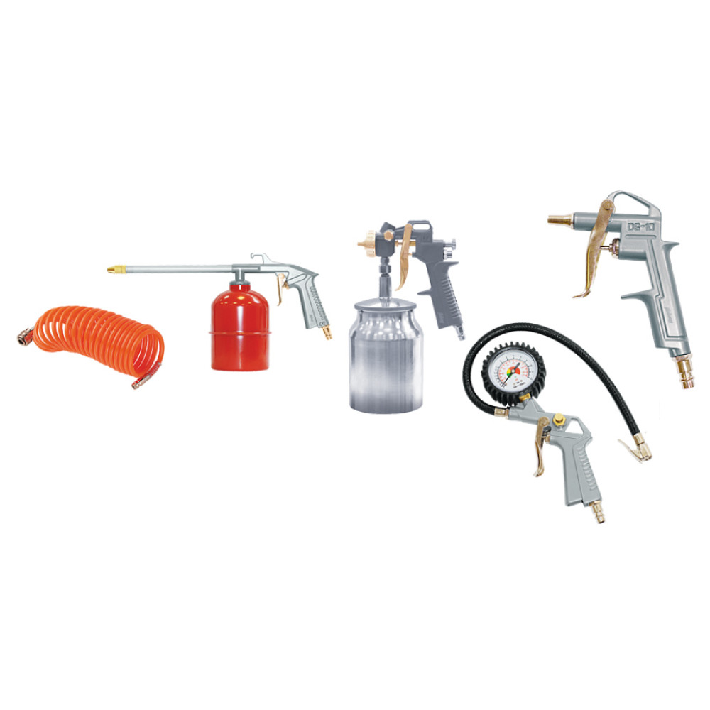 Набор пневмоинструмента, 5 предметов (краскораспылитель с нижним бачком).
