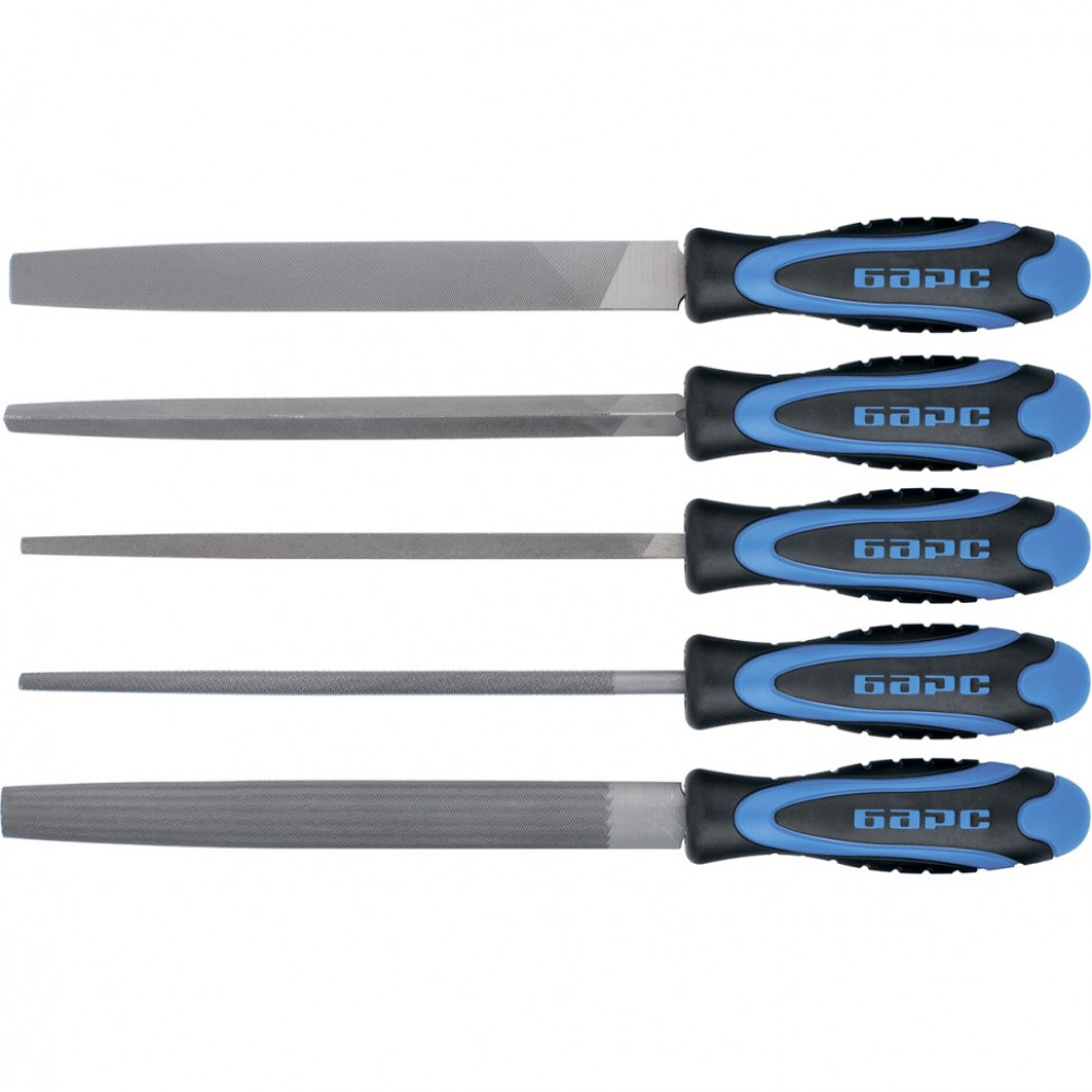 Набор напильников Барс 15854 из 5 штук, с длиной рабочих частей 200 мм, с двухкомпонентными рукоятками, предназначен для слесарных работ. Разнообразные профили позволяют выполнять различные виды обработки — опиловку плоских и изогнутых поверхностей, отверстий с круглым, треугольным и прямоугольным сечением, а также пазов, граней и внутренних углов. Напильники обладают высокой производительностью и обеспечивают качественную шлифовку за счет перекрестной насечки №2.
