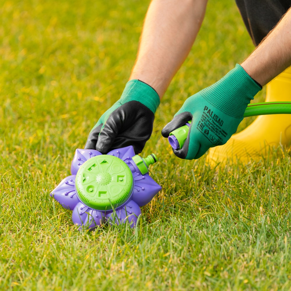 Распылитель-дождеватель Palisad 65400 на подставке, с регулировкой и 8 режимами, позволяет обеспечить регулярный и равномерный полив растений, создав оптимальные условия для их содержания. Подходит для участков среднего размера площадью до 66 м².ПреимуществаОрошение секторов различной формы — предусмотрено 8 режимов полива: прямоугольник, квадрат, круговой, 1/2 круга, 1/4 круга, 3/4 круга, душ и распыление.Надежность и долговечность — распылитель-дождеватель изготовлен из ударопрочного ABS-пластика.Установка оптимального расстояния для полива — дальность подачи воды можно регулировать в диапазоне 1-8,4 м.Устойчивое основание — устройство можно устанавливать даже на неровную поверхность.Универсальность — распылитель-дождеватель совместим со всеми элементами полива Palisad.