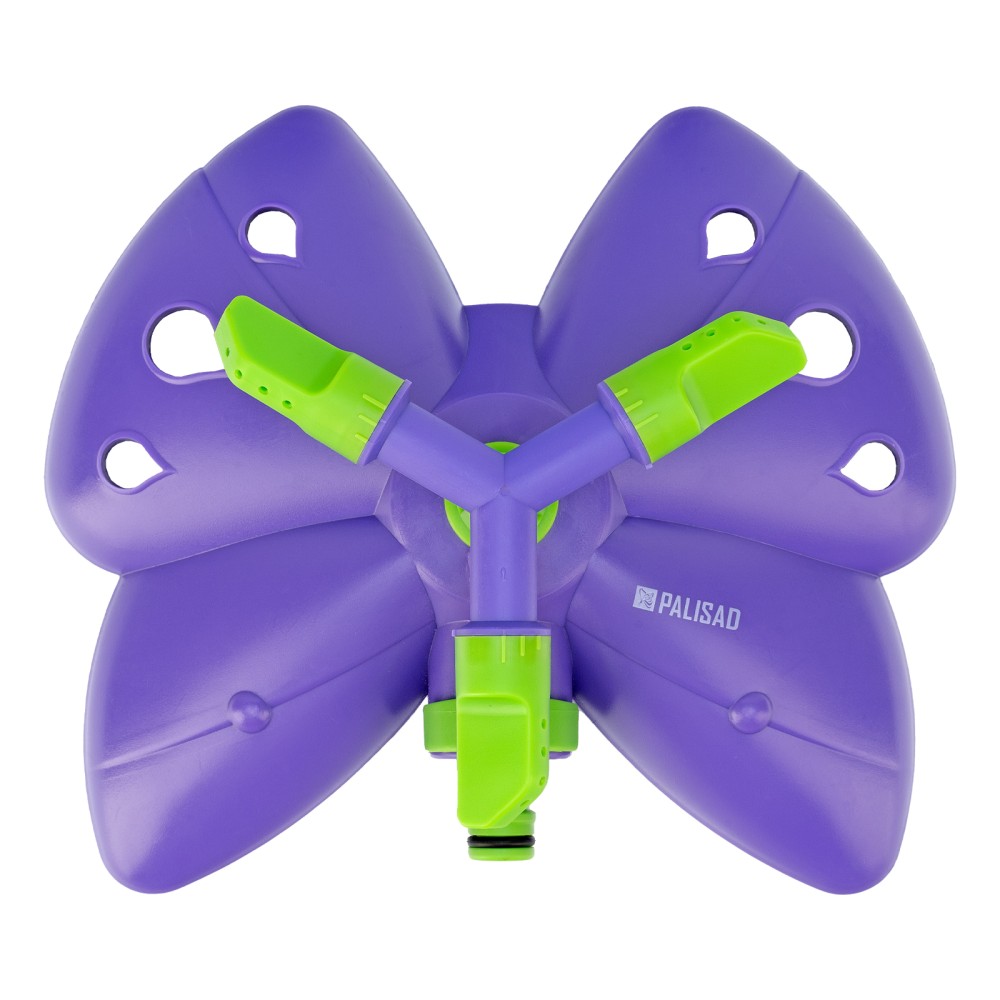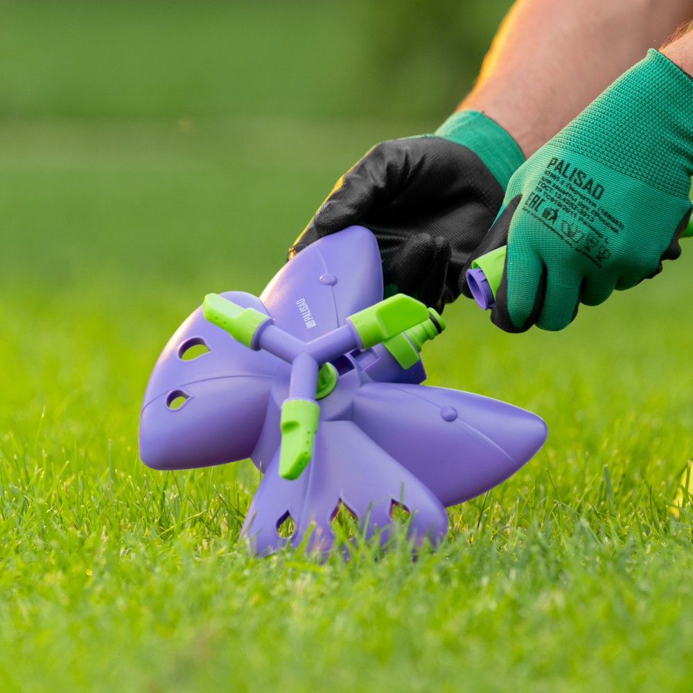 Вращающийся разбрызгиватель Palisad «Бабочка» 65401 с 3 лопастями, с регулировкой, используется для орошения газонов и садовых участков. Максимальная площадь полива составляет 58 кв.м. Дальность распыления можно варьировать от 2 до 4,3 м. На каждой лопасти 4 отверстия, обеспечивающие равномерный полив. Основание выполнено в форме бабочки, что придает устройству оригинальный вид.ПреимуществаДолговечность — корпус из прочного ABS-пластика устойчив к повреждениям.Возможность установки на неровной почве — изделие имеет широкую устойчивую подставку.Универсальность — штуцер разбрызгивателя совместим с любыми поливочными системами Palisad и Palisad Luxe.