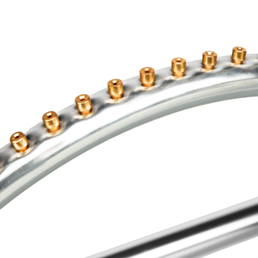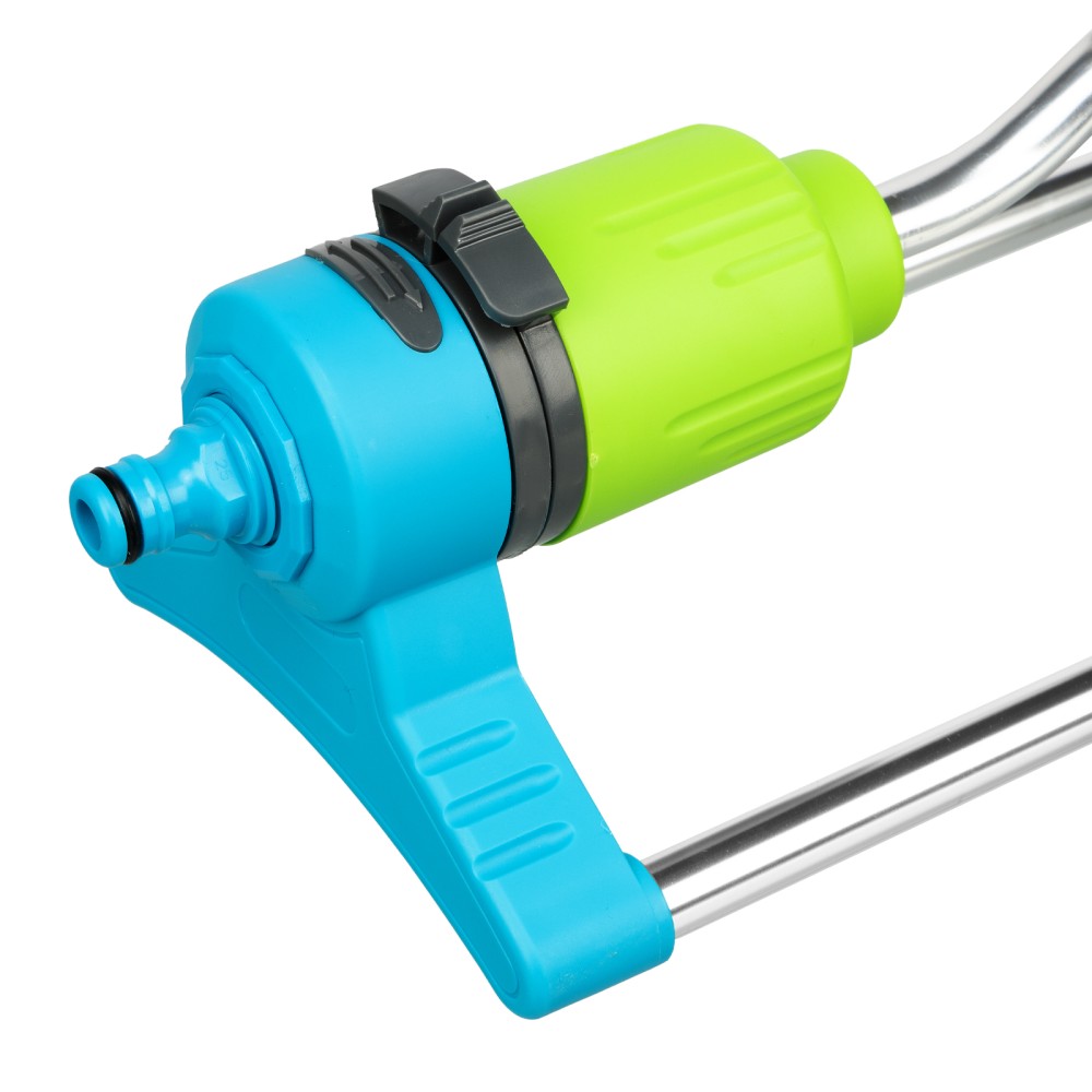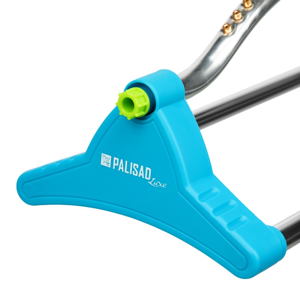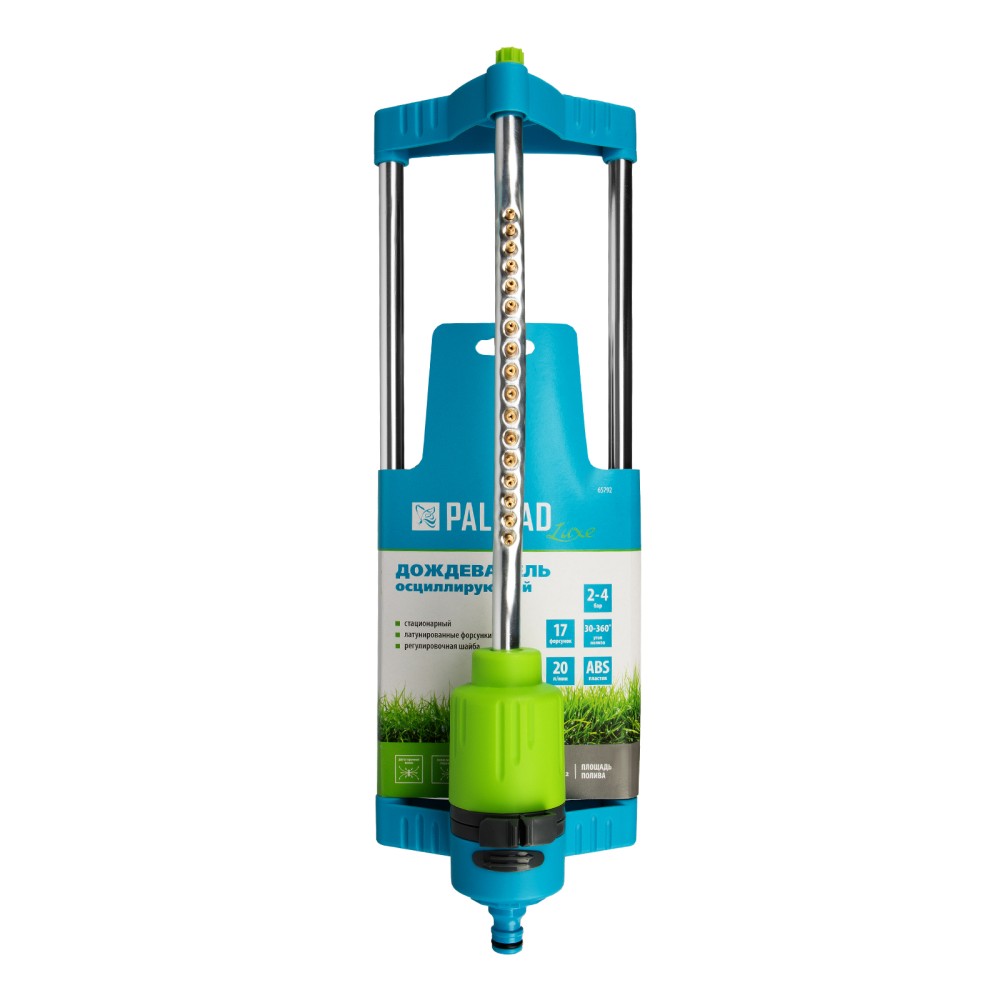 Осциллирующий дождеватель Palisad Luxe 65792 с 17 форсунками предназначен для стационарного орошения прямоугольных участков площадью до 342 кв. м. Угол орошения регулируется, поэтому можно выбрать режим правого, левого либо центрального полива. Есть возможность установки дальности разбрызгивания до 19 м. Распылитель используется для ухода за растительностью на загородном участке и прочих озелененных территориях.ПреимуществаПрочность и долговечность — напорная рампа изготовлена из алюминия.Широкое основание — разбрызгиватель можно установить на неровную поверхность.Защита от засорения — встроенный металлический фильтр предотвращает попадание посторонних частиц в рампу и форсунки.Простой уход — загрязненные форсунки можно прочистить специальной иглой.Продуманная конструкция — игла для прочистки форсунок не потеряется, т. к. вмонтирована в сливную пробку.Легкое удаление остатков воды из напорной рампы — производитель предусмотрел сливную пробку.Быстрое подключение — дождеватель имеет универсальный штуцер, совместимый с коннекторами всех поливочных систем Palisad и Palisad Luxe.