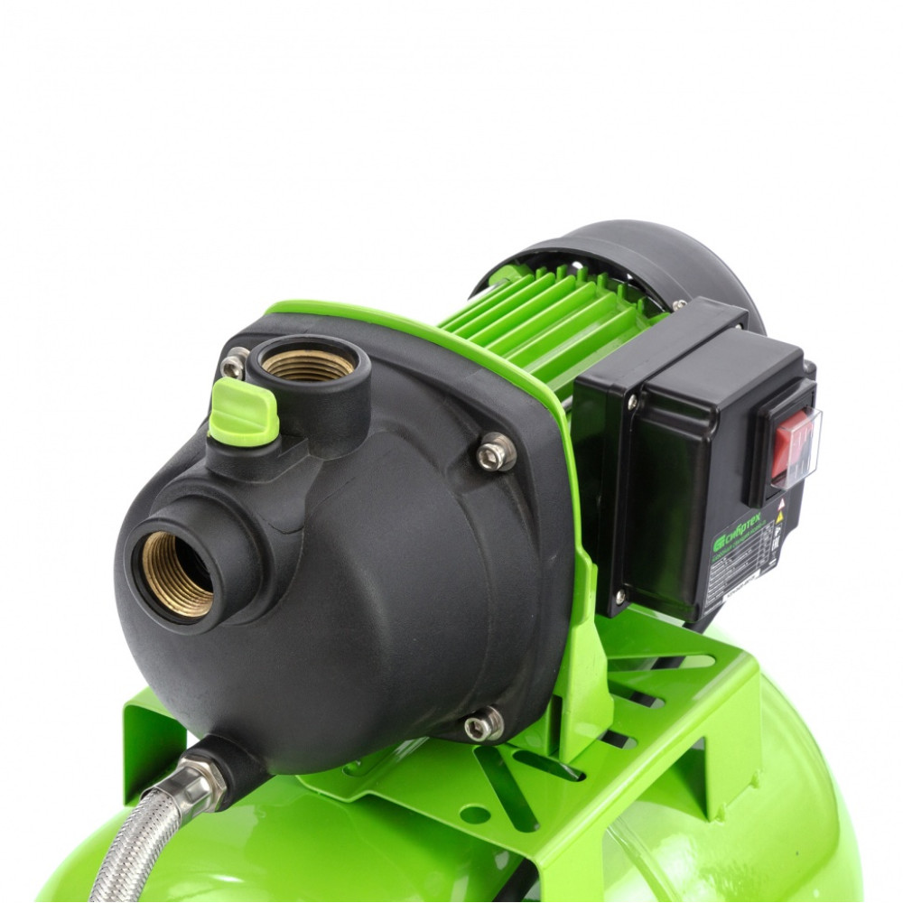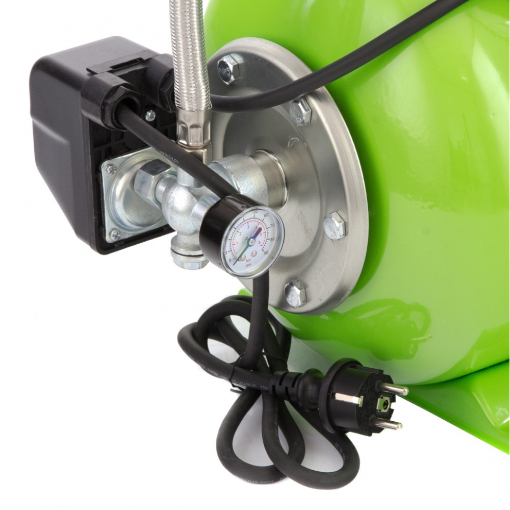 Станция работает в автоматическом режиме: накапливает воду в ресивере и включается по мере ее потребления. Подача воды также происходит экономно: она поступает к сантехническому оборудованию и кранам только в момент их включения. Пробка заливной горловины легко откручивается, поэтому подготовить насосную станцию к первому запуску не составит труда.