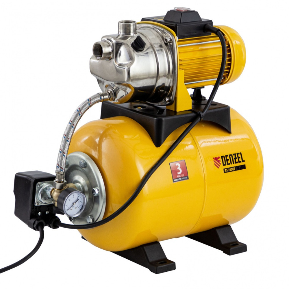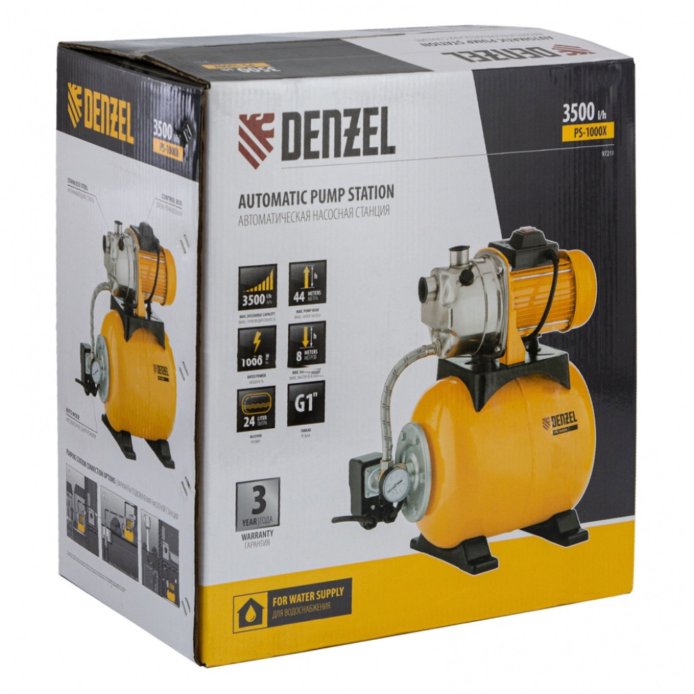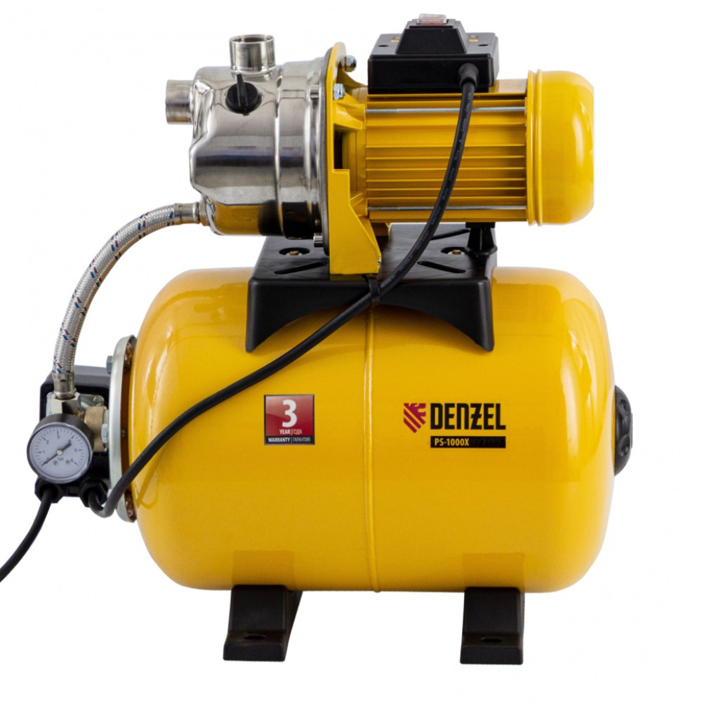Насосная станция PS1000Х, 1000 Вт, 3500 л/ч, ресивер 24 л, подъем 44 м, нержавейка Denzel