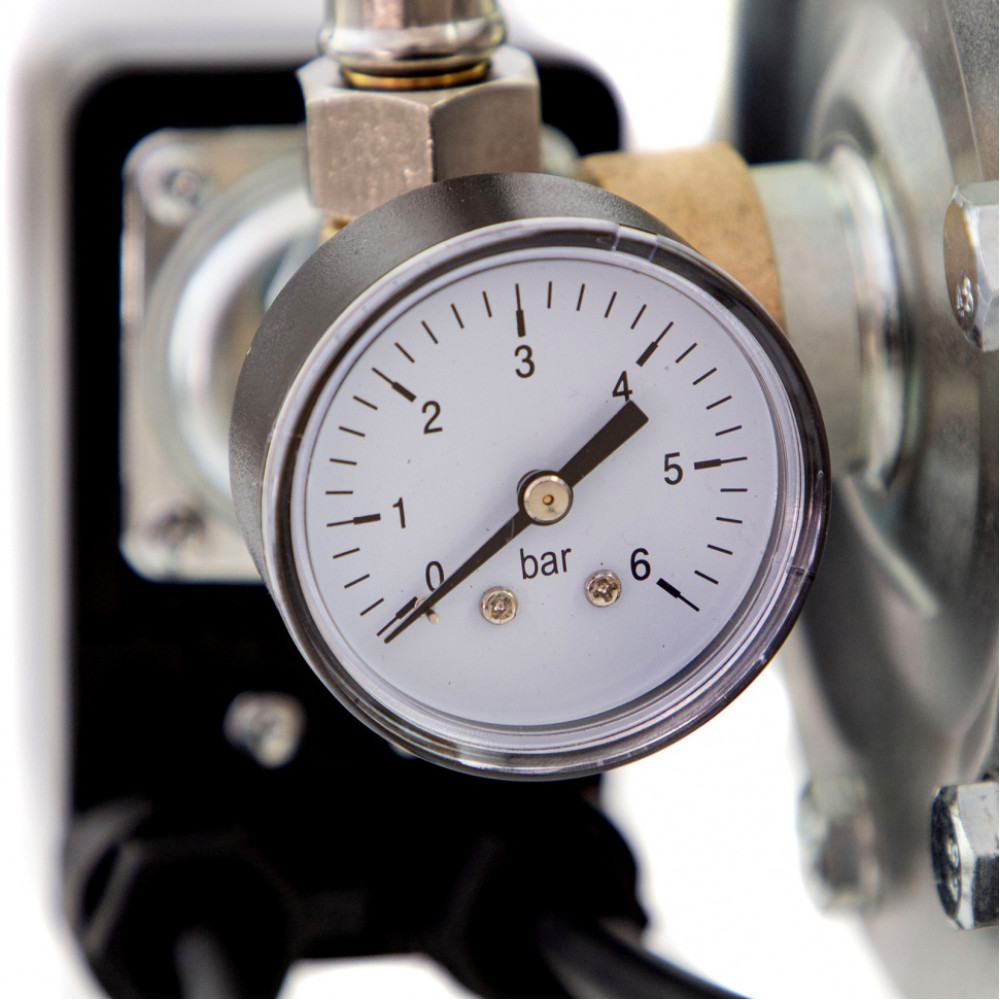 - Автоматизация работы — реле контролирует работу насоса в диапазоне 1,5–3 бар, отключая двигатель при превышении и запуская при понижении давления, это обеспечивает сохранность системы и экономное энергопотребление.