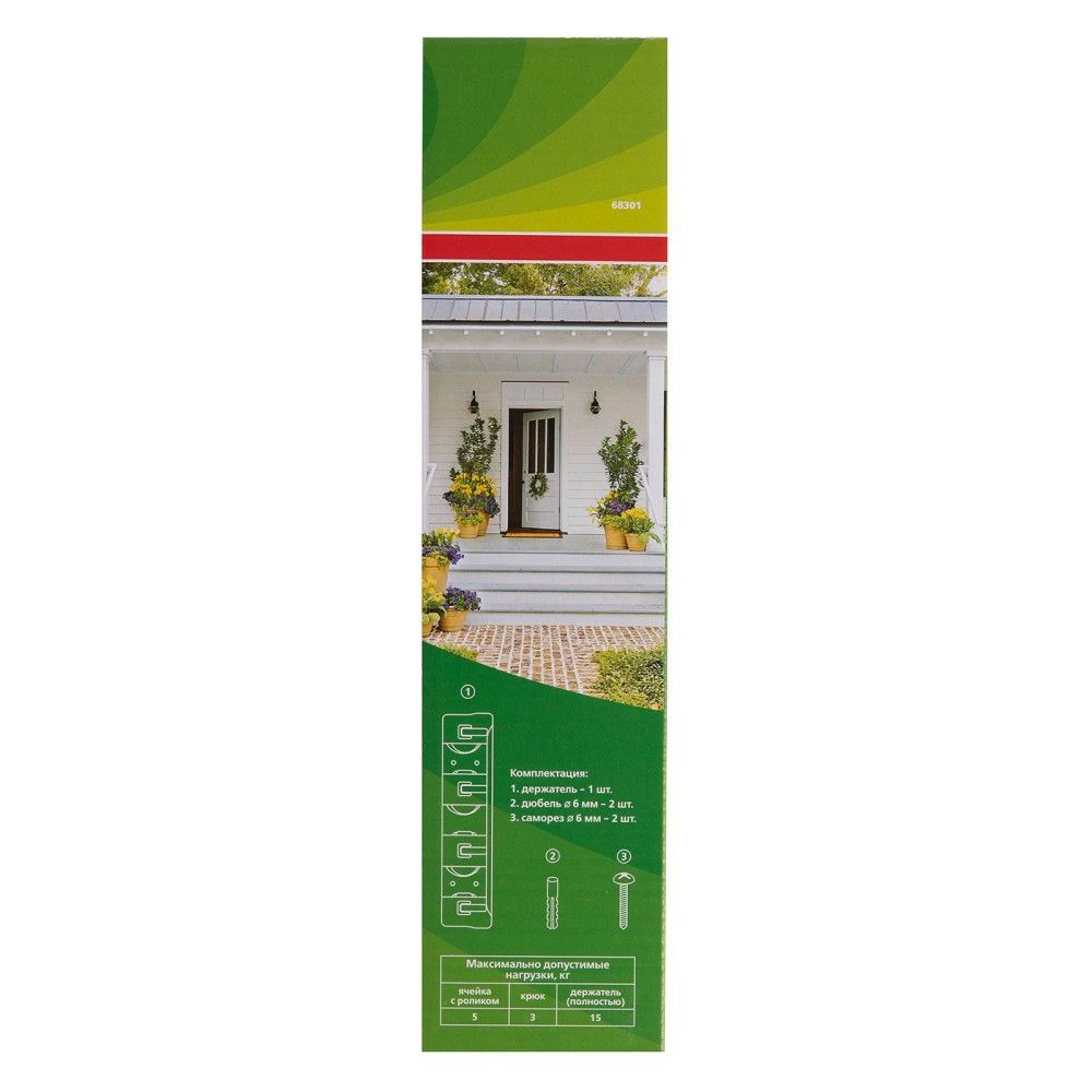 Пластиковый настенный держатель Palisad 68301 с 3 ячейками и 4 крюками используется для хранения садового-огородного инструмента. С ним инвентарь можно разместить в подвешенном состоянии, что позволяет упорядочить рабочее пространство. Подвесное хранение обеспечит безопасное хранение инвентаря и исключит риск их поломки. На роликах можно разместить рабочий инвентарь, а на крючках — мелкие бытовые предметы.ПреимуществаПодвижные самозажимные ролики — можно вешать инструменты без отверстия в рукоятке.Надежный захват — ролики имеют обрезиненную поверхность, поэтому предметы не выпадают.Качественное исполнение — ячейки и зажимы из ПВХ, крюки и основание из полистирола обеспечивают держателю стойкость к перепадам температур.Размещение нескольких инструментов — держатель имеет 4 крюка и 3 ячейки.Прочность и надежность — держатель выдерживает нагрузки до 15 кг, ролики — до 5 кг, крюки — до 3 кг.Набор крепежа в комплекте — держатель можно сразу устанавливать на стену после приобретения.