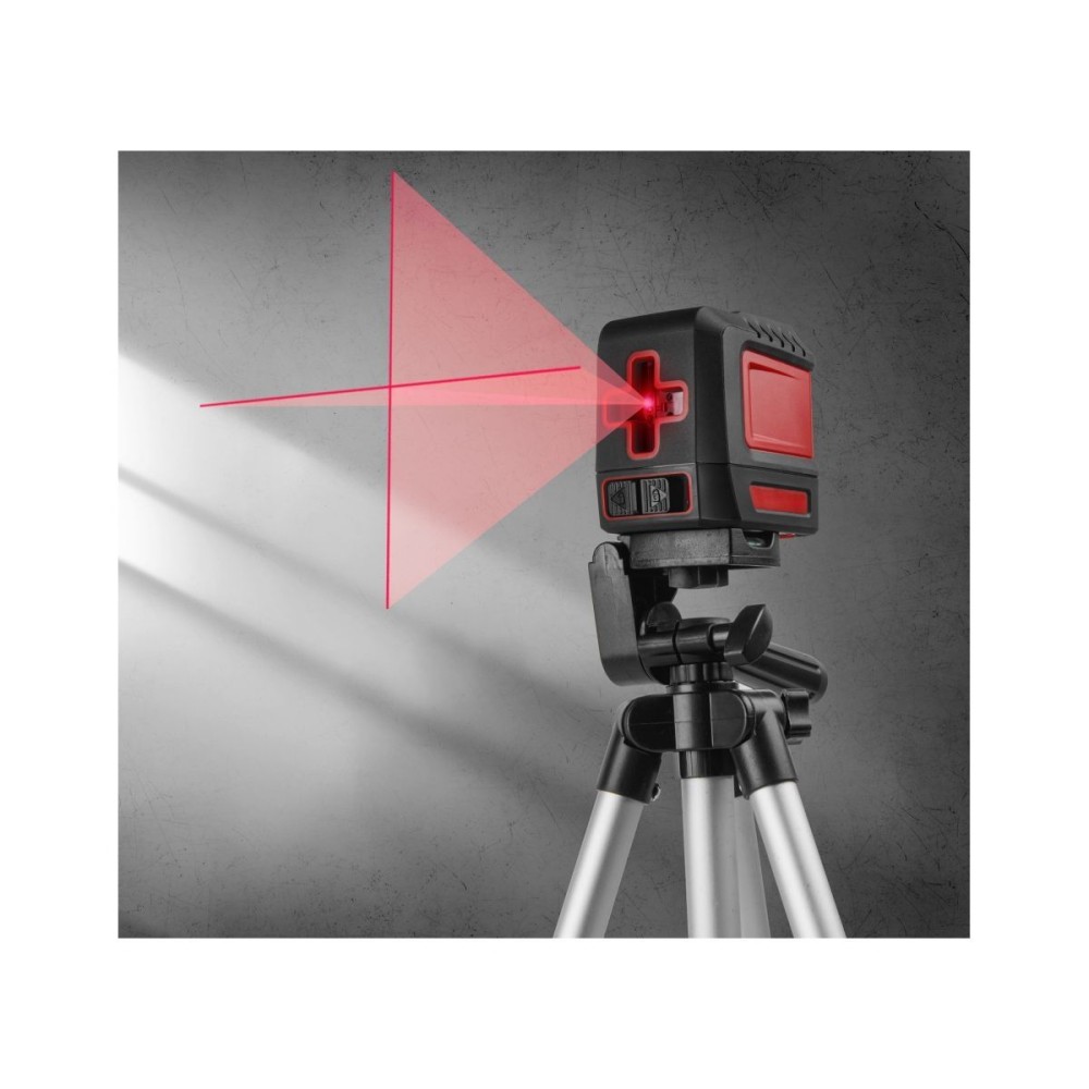 Компактный кросс-линейный нивелир для простых задач по построению плоскостей. Оснащен функцией автоматической настройки имеет прорезиненые боковые грани корпуса, что выполняет противоударную функцию. Есть возможность фиксации лучей. Поставляется в комплекте со штативом 1 м.