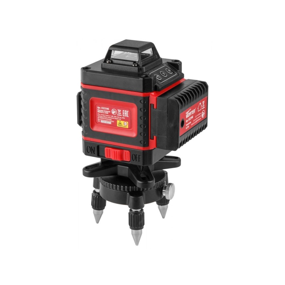 Нивелир лазерный WORTEX LL 0340 в чем. + аксессуары 4х360°, до 25 м, +/- 0.3 мм/м, зеленый