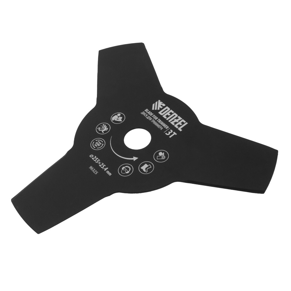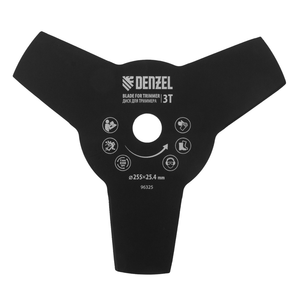 Диск для триммера Denzel 96325 размером 255 х 25,4 мм, толщиной 1,6 мм, с 3 лезвиями, предназначен для скашивания травы различных типов, в том числе с жесткими стеблями (полыни, крапивы, лебеды). Рекомендован к использованию со всеми типами бензиновых триммеров, а также с электрическими триммерами мощностью не менее 1,2 кВт, например, Denzel 96611 и 96612.ПреимуществаПрочность и долговечность — диск изготовлен из стали и обработан порошковой краской для защиты от коррозии.3 лезвия — диском удобно скашивать высокую и жесткую траву.Высокая производительность — лезвия с режущими кромками большой длины заточены с обеих сторон.