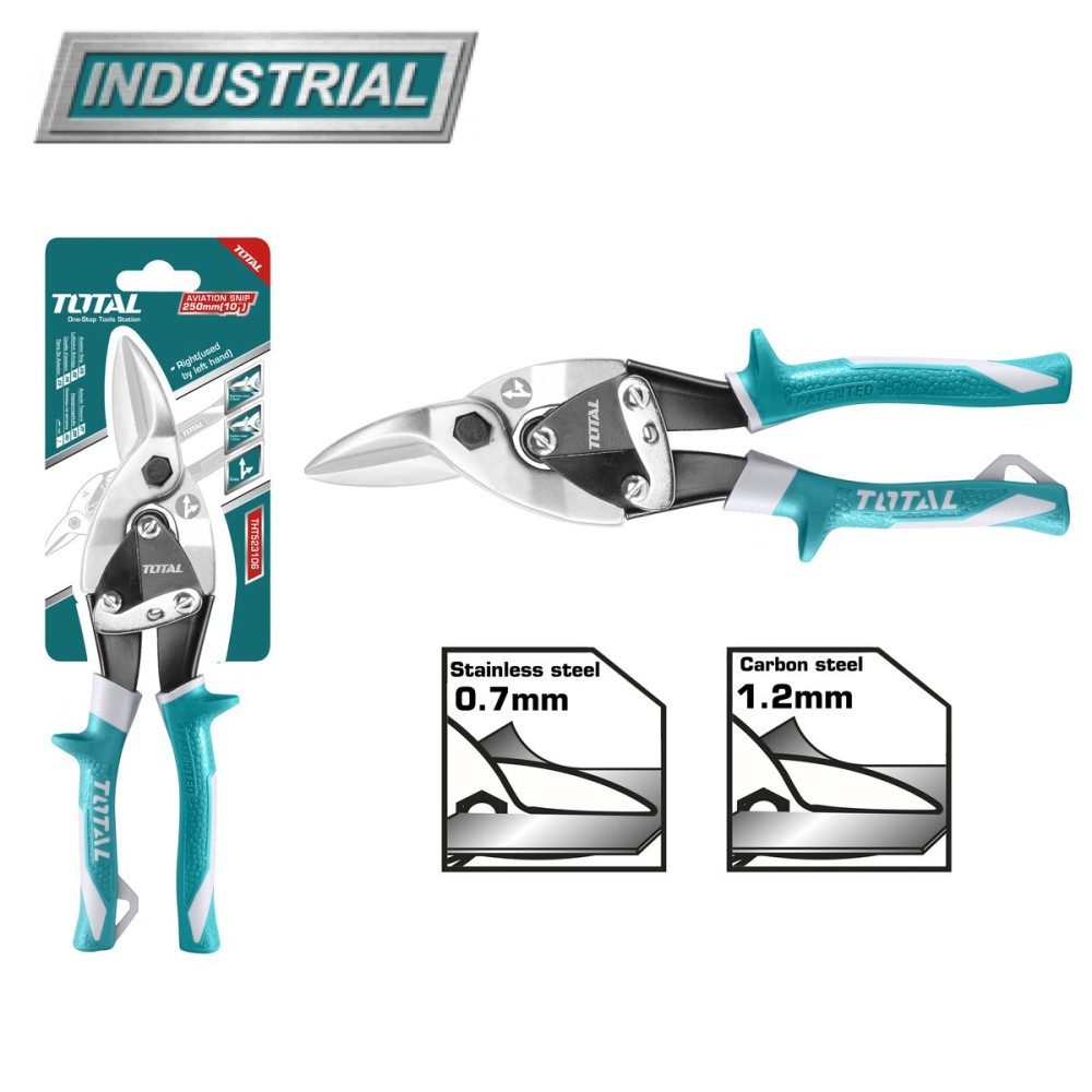 - Профессиональные ножницы по металлу с правым резом TOTAL THT523106 применяются в разных сферах для резки тонкого листового металла и других материалов: пластика, резины, линолеума и пр.