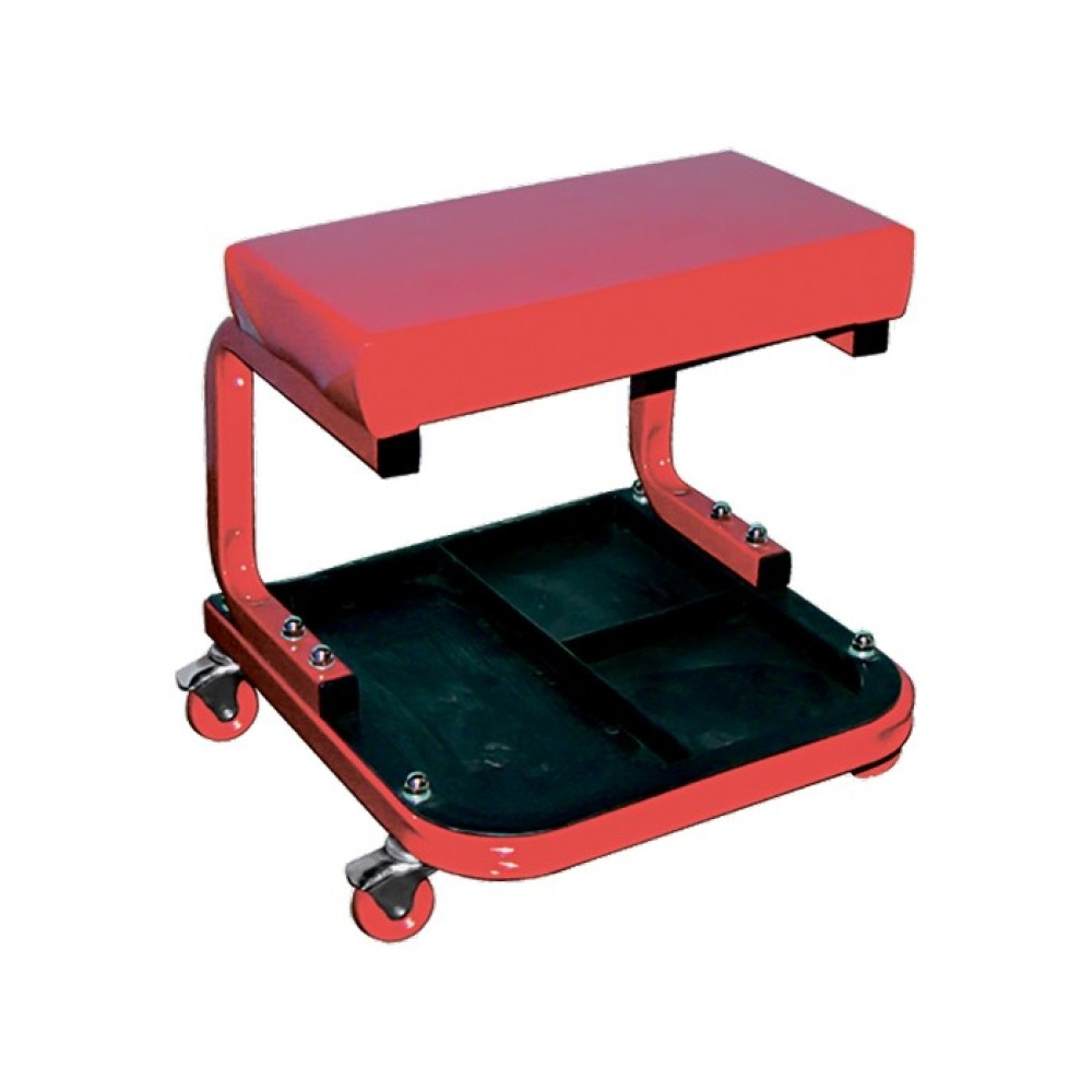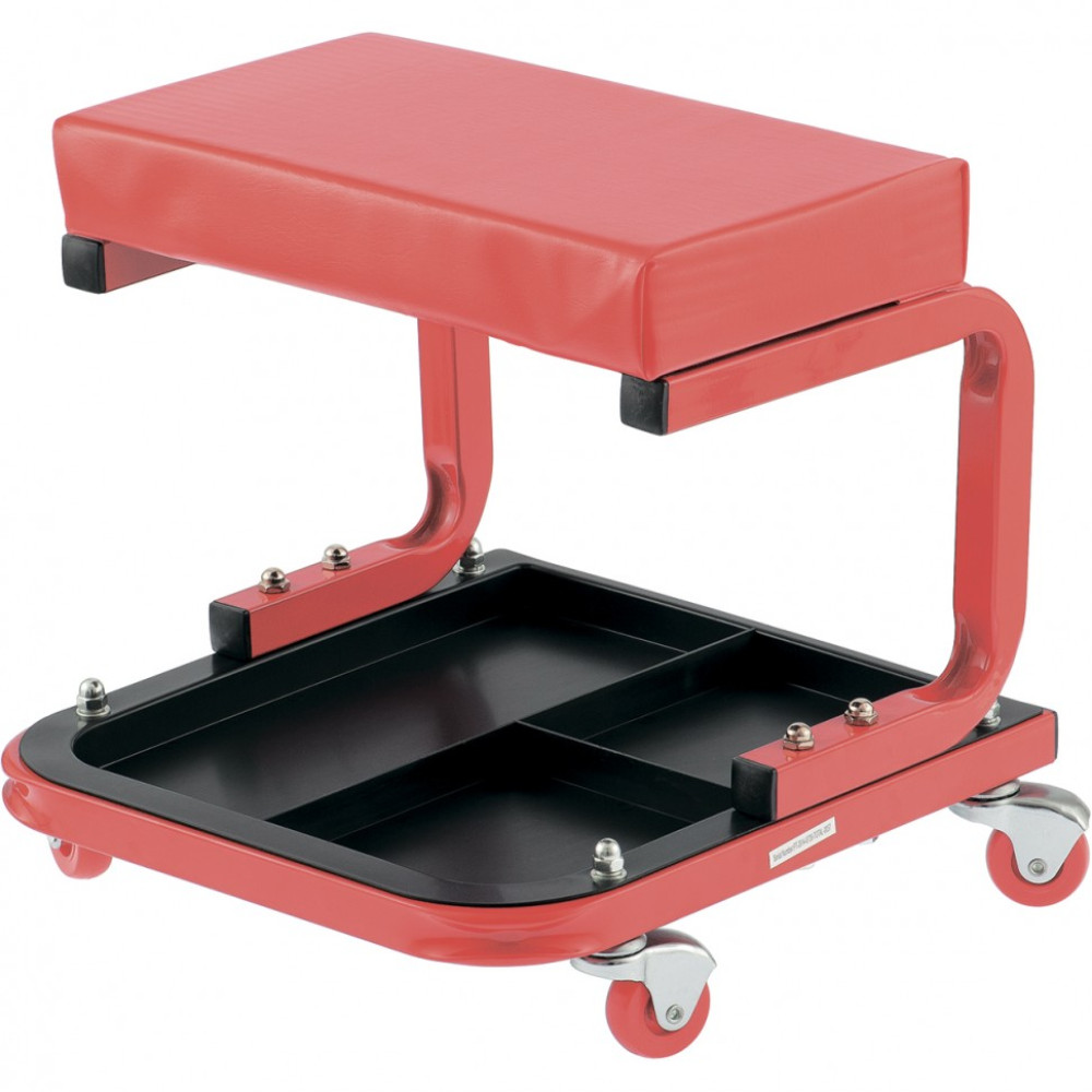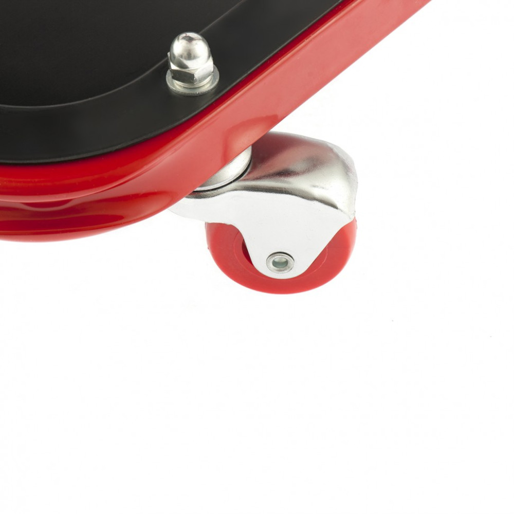 - На сиденье предусмотрены 4 колеса с углом поворота на 360°, поэтому можно с удобством перемещаться по гаражу.