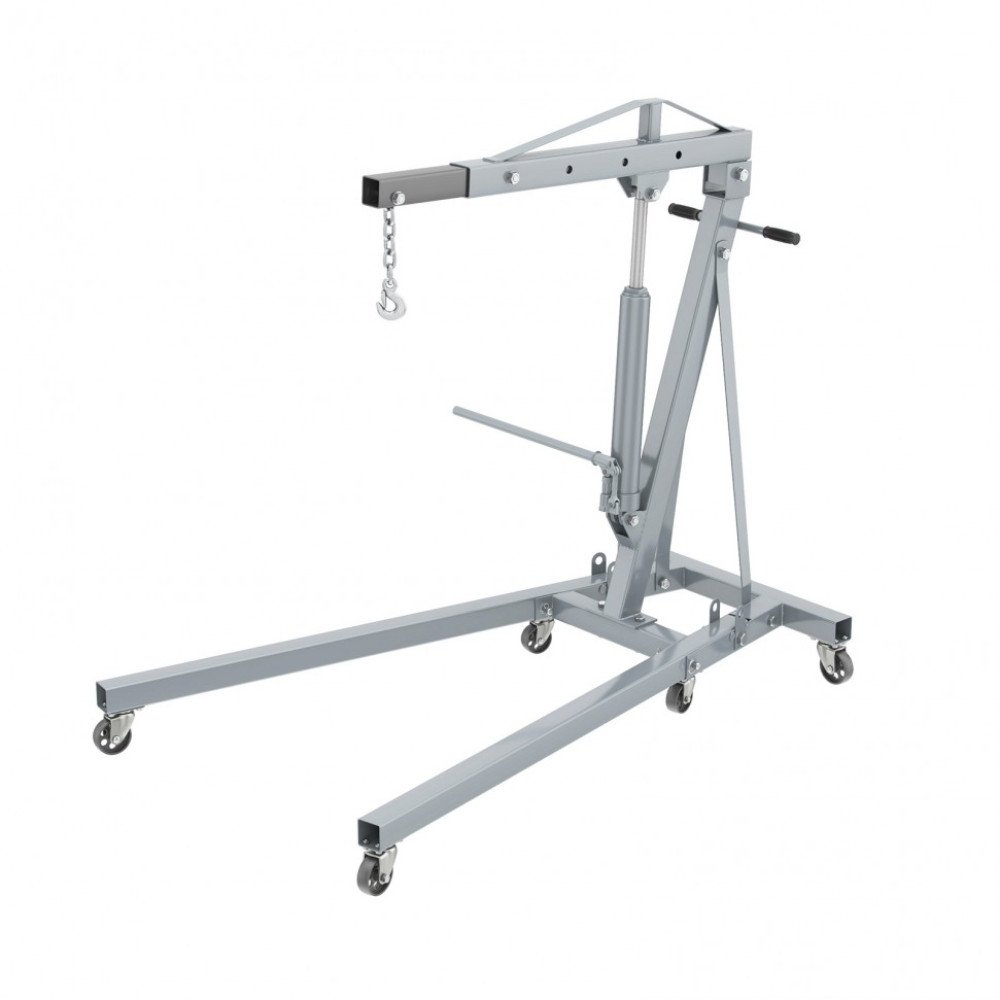 Складной гидравлический кран Matrix 567325 грузоподъемностью до 2 т — мобильное устройство для подъема на высоту до 2200 мм и перемещения тяжелых элементов автомобильного оборудования. Высота подхвата составляет 25 мм. Устройство изготовлено из стали и выдерживает повышенные нагрузки. Величина вылета стрелы регулируется в зависимости от массы груза. Кран совместим с траверсой 567275. Используется в автосервисах для демонтажа и монтажа автомобильных двигателей, будет полезен и в частном гараже.
