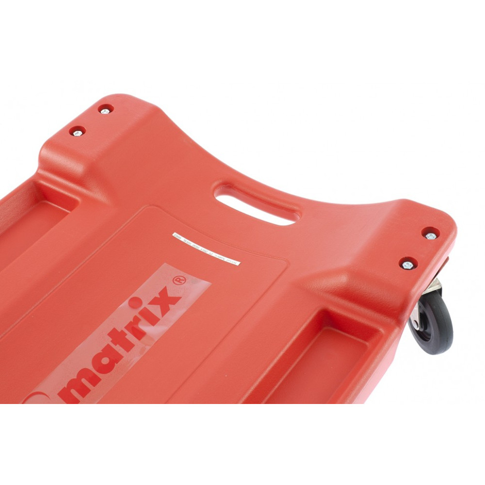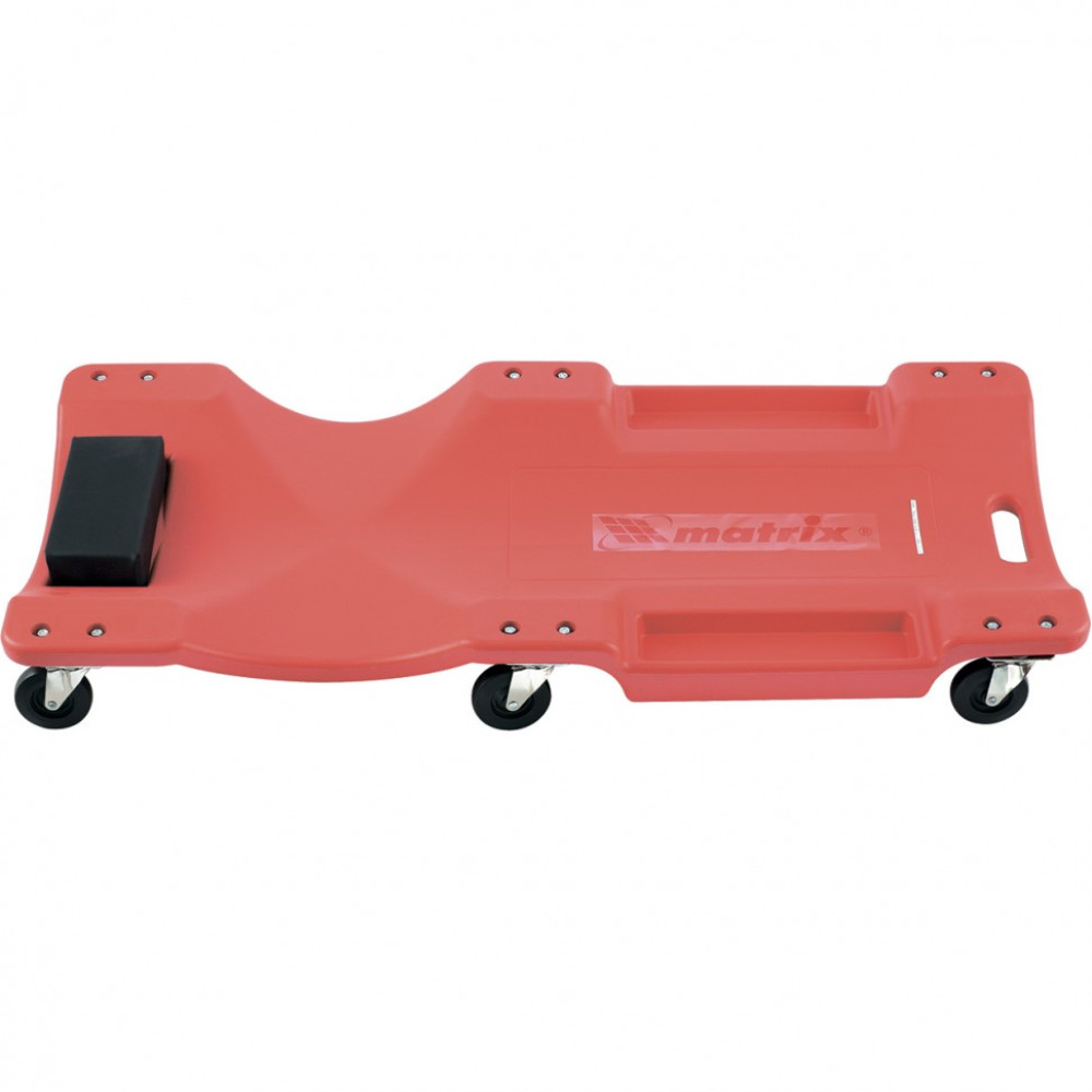 Лежак ремонтный на 6-ти колесах Matrix 567485, 1000 х 475 х 128 мм, пластиковый, облегчает работу при проведении ремонта в нижней части авто. Он будет полезен для автолюбителей в гараже. А благодаря двум встроенным инструментальным лоткам все необходимые инструменты будут под рукой.