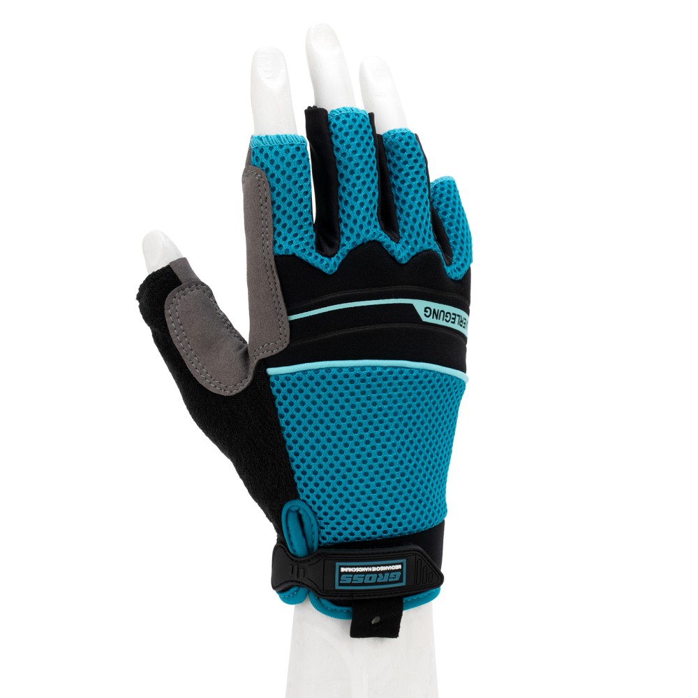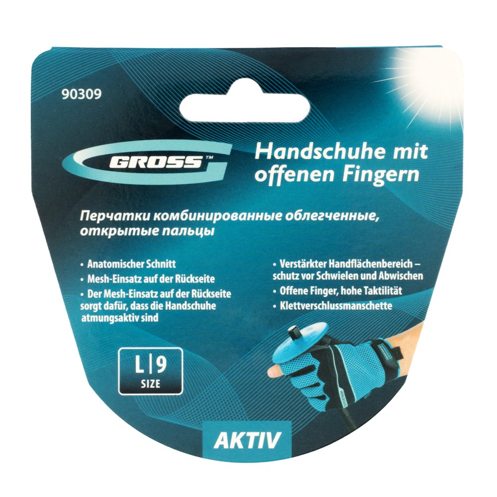 Перчатки комбинированные облегченные Gross AKTIV 90309 с открытыми пальцами, размера L (9), служат для защиты рук от механических повреждений и образования мозолей. Формованные накладки на ладонях препятствуют появлению синяков и ссадин. Открытые пальцы позволяют использовать перчатки в жаркую погоду, при этом подверженные износу части перчатки остаются защищенными. Изделия могут использоваться при проведении строительных и ремонтных работ, а также во время занятий спортом или активного отдыха.ПреимуществаПрочность — пенный протектор защищает руки от повреждений и образования мозолей.Повышенная эластичность — перчатки плотно облегают кисти рук и не сковывают движения пальцев.Надежная фиксация на кистях рук — гибкие манжеты с застежкой типа velcro предотвращают сползание перчаток.Комфортная работа — благодаря сетчатой вставке руки не потеют, а специально разработанные швы Ergonomic Cut не натирают кожу ладоней.Гарантированное качество — проведенные испытания подтверждают устойчивость изделий к механическим воздействиям и износу.
