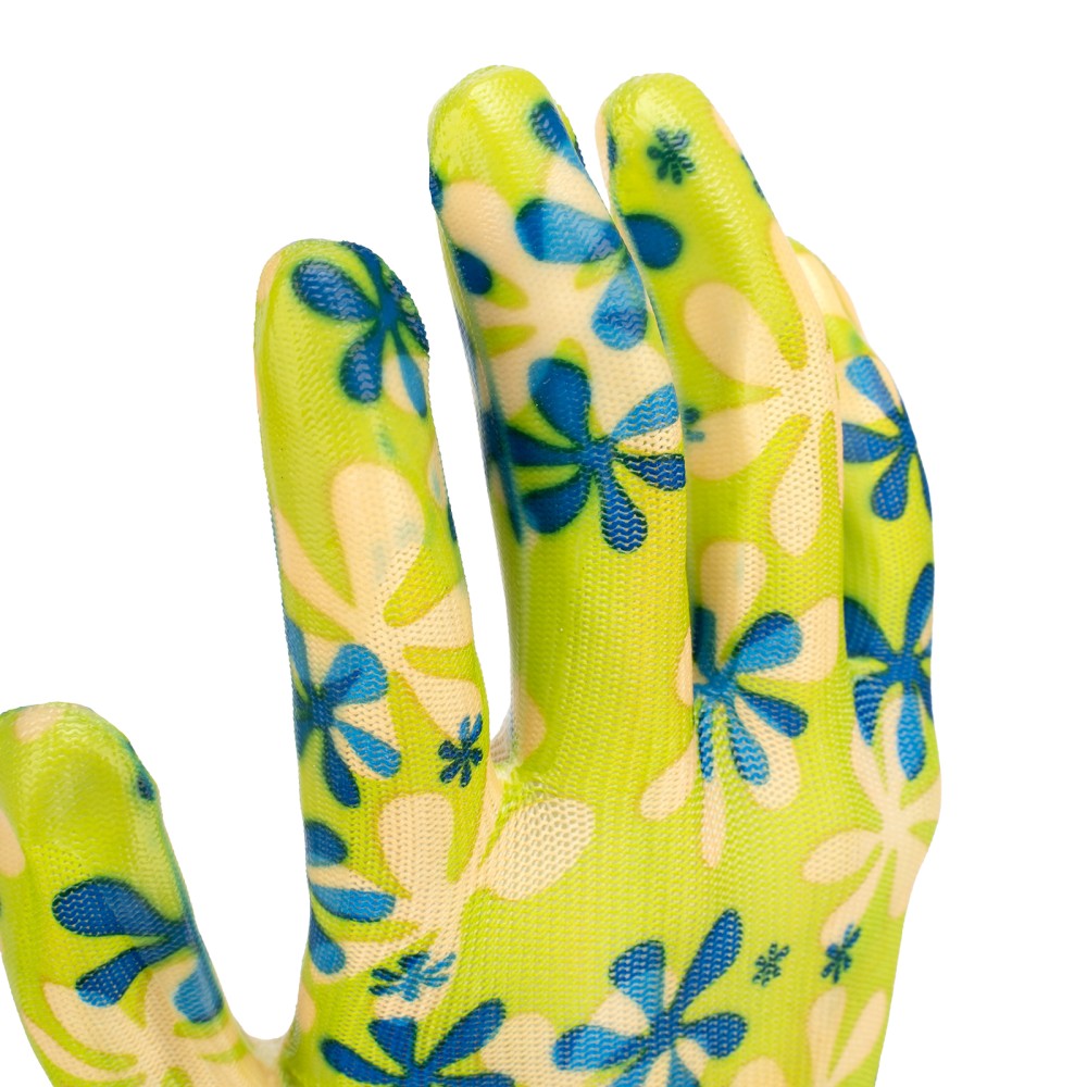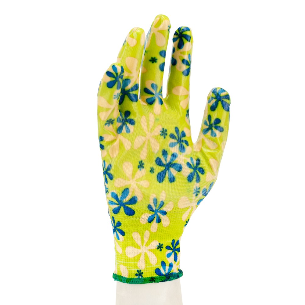 Зеленые садовые перчатки Palisad 67741 из полиэстера с нитрильным обливом, размера S, предназначены для защиты рук от механических воздействий (истирания). Предотвращают появление царапин, ссадин, а также намокание рук во время садово-огородных работ. Удобно садятся по руке, не стесняя движений. Перчатки пригодятся на дачном участке.ПреимуществаДолговечность — перчатки из полиэстера устойчивы к истиранию и воздействию ультрафиолета, края манжет обработаны на оверлоке и не распускаются.Надежное сцепление с рабочей поверхностью — благодаря нитрильному покрытию садовый инструмент не выскальзывает из рук.Плотная посадка — эластичные манжеты плотно облегают запястья, перчатки не сползают с рук.Гипоаллергенность — использование перчаток безопасно для здоровья.Комфортное использование — тонкое полотно обеспечивает хороший воздухообмен и тактильную чувствительность пальцев.Благоприятная атмосфера во время работы — яркая расцветка привлекает внимание и повышает настроение.